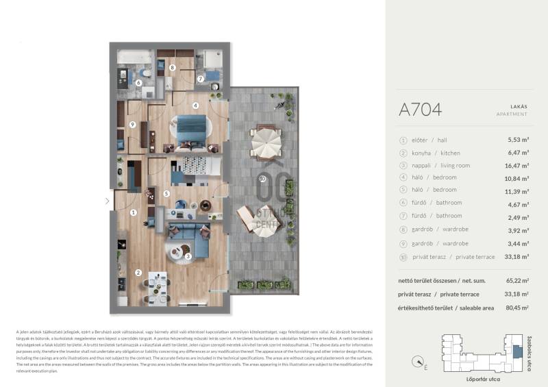 Erkély mérete: 33 m2