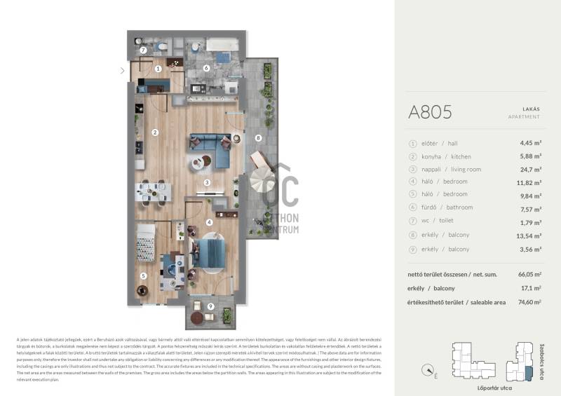 Erkély mérete: 17 m2