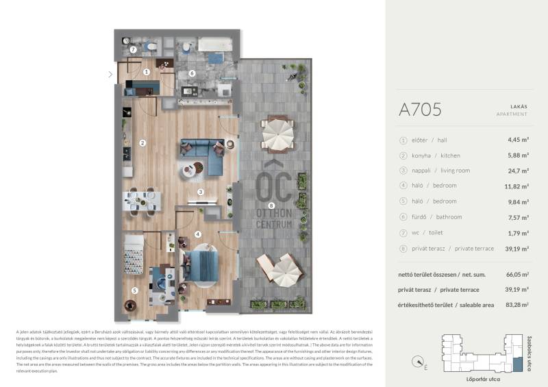 Erkély mérete: 39 m2