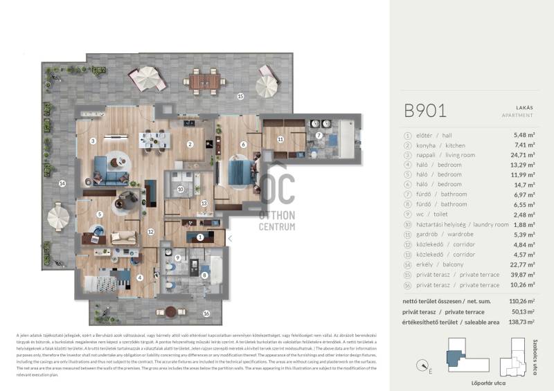 Projekt bemutatásaA kiváló elhelyezkedésű WestGate 4 lakópark a Dózsa György úttól és a Lehel úttól pár lépésre található, így a Belváros könnyedén megközelíthető autóval és tömegközlekedéssel egyaránt. A 4 ütemben épülő lakóparkban összesen közel 1000 lakás kerül megépítésre, melyből az első három ütem elkészültével több mint 700 lakás átadása már megtörtént.2-3-4 szobás lakástípusok elérhetőek, a csendes belső kertre néző családi otthontól a kisvárosias utcára néző lakáson keresztül az indusztriális-városi panorámát kedvelőkig mindenki megtalálhatja a hozzá illő ingatlant.A jelenleg legkorszerűbb hőszivattyús rendszer lehetővé teszi az otthonok energiatakarékos fenntarthatóságát. Lakásonként hőmennyiségméréssel ellátott felület fűtés-hűtés kerül kialakításra, interneten keresztül távolról elérhető és programozható, valamint kézi hőmérsékletállítási lehetőséggel,rejtett gépészeti vezetékekkel.A lakásokba okosotthon rendszer kerül beépítésre. Az okosotthon rendszer biztosítja a lakások magasabb szintű és hatékony üzemeltetését. A Vevőneklehetősége van három, különböző típusú okosotthon rendszer (alapcsomag) közül választani, amelyek egyike sem eredményezi a lakások vételárának növekedését.Igény esetén felár ellenében lehetőség van beépített bútorok megrendelésére is.A lakásokhoz mélygarázsban biztosított parkoló vásárolható, illetve emeleti tárolók is leköthetők.Extrák az épületben: közösségi nappali, könyvtár, közösségi autó, fészer és csomagpont valamint az összes lakás okosotthon-rendszerrel allátva kerül átadásra.Rohamosan fejlődő környék, remek befektetés!Fizetési ütemezés:10% - szerződéskötéskor90% - átadáskor (használatbavételi engedélyt követően)Várható átadás: 2027.12.31.