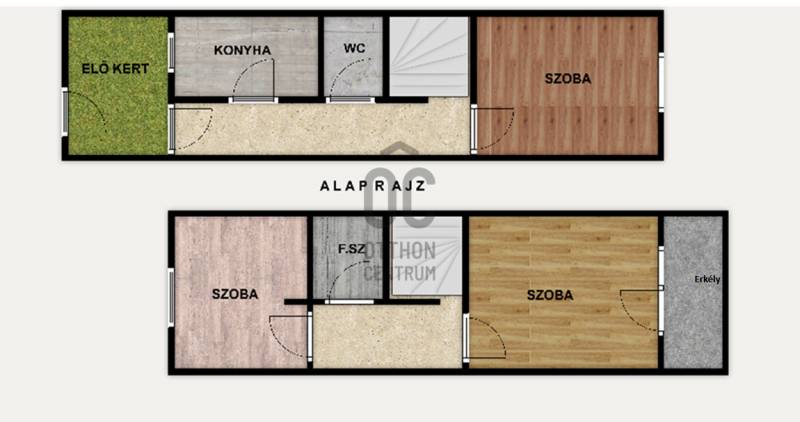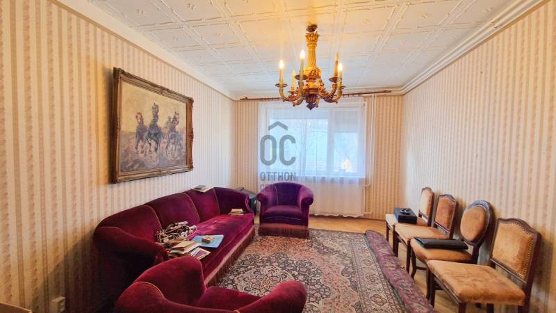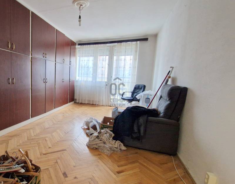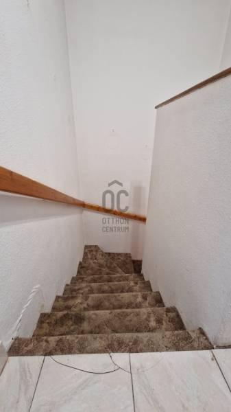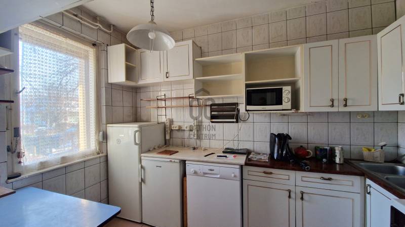 A 15 lakásból álló sorház a 80-as évek elején hagyományos ház gyári elemekből, panelből épült.Minden ingatlan önálló, Kis előkerten keresztül lehet megközelíteni.A lakástól 15 méterre található egy tégla garázs és egy saját zárható tároló.Az ingatlan központi helyen található, de mégis kis csendes mellékutcában.A hasznos alapterület 73nm.Földszint:-konyha-előszoba-wc-szobaEmelet:-2 szoba-kádas fürdőszoba wc-velAz ingatlan átlagos állapotban van, igény szerint lehet felújítani, modernizálni.A kiürítés folyamatban van, pár héten belül teljesen üres lesz, azonnal birtokba vehető.A melegvíz és a fűtés néhány éves korszerű Ariston gázcirkóról üzemel.A vételár a garázst és a tárolót is tartalmazza!