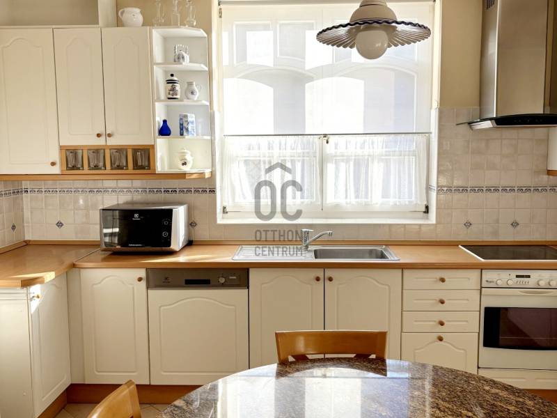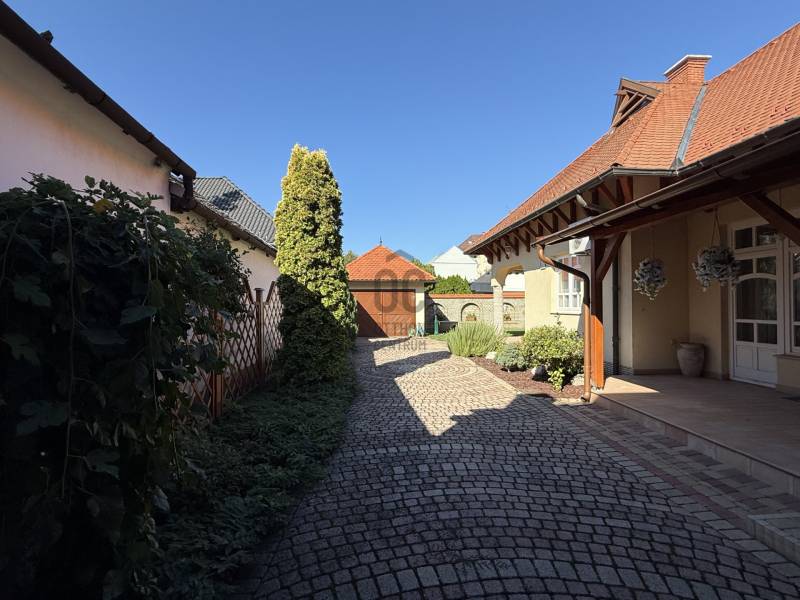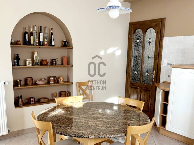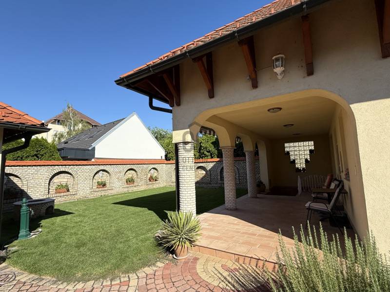 Baján, rendezett, családi házas övezetben, a város főterétől mindössze pár percnyi sétára kínálunk megvételre egy 543 nm-es telken, 1997-ben, saját részre épült, magas műszaki tartalommal és kimagasló minőségben kivitelezett családi házat.Az ingatlan Ytong falazattal, betongerendás, béléstestes födémmel, valamint hódfarkú cserépfedéssel épült. A külső és belső nyílászárók egyedi tervezésűek: a homlokzati fa ablakok kétrétegű üvegezéssel, a belső ajtók pedig tömör fából, ólomüvegezéssel készültek.A 188 nm-es lakótér rendkívül jól átgondolt elrendezésű:három külön nyíló hálószoba, intarziás parkettával burkolt nappali, étkező, teraszkapcsolatos konyha, bútorozott kamra, mosókonyha kényelmes padlásfeljáróval, valamint egy tágas fürdőszoba (zuhanyzóval, masszázsfunkciós sarokkáddal, WC-vel és bidével), továbbá egy külön WC–kézmosó kapott helyet.A fűtést kombi gázkazán biztosítja padlófűtéssel és lapradiátorokkal, kiegészítve egy fatüzelésű cserépkályhával. A hálószobák radiátoros fűtésűek és padlószőnyeggel burkoltak, a többi helyiség kerámialapos, padlófűtéses. A meleg vizet két villanybojler, a komfortot pedig nagy teljesítményű klímaberendezés és riasztórendszer szolgálja. Az ingatlan összközműves, 3×20 A elektromos kapacitással rendelkezik.A ház alatt egy 90 nm-es, angolaknás, szigetelt pince található, több tárolóval és külön konyhával – kiváló lehetőség hobby-, vendég- vagy akár vállalkozási célokra is.A gondozott kertben fedett autóbeálló és garázs (külön-külön egy autó számára), pázsitos udvar, díszkert, hangulatvilágítás, kerti csap, bográcsozó, és a kikapcsolódáshoz két fedett terasz került kialakításra.A környék rendezett, ingyenes parkolással és kiváló megközelíthetőséggel. A környéken minden fontos intézmény és szolgáltatás rövid sétatávolságon belül elérhető: üzletek, hivatalok, iskola, orvosi rendelő, patika, éttermek, kávézók...Az ingatlan tehermentes, térképészetileg rendezett és rövid határidővel birtokba vehető.A bútorzat külön megállapodás tárgyát képezheti.Ez az otthon ideális választás mindazok számára, akik minőségi kivitelezésű, időtálló, belvárosközeli családi házat keresnek nyugodt környezetben.Megtekintésért és további információért keressen bizalommal!