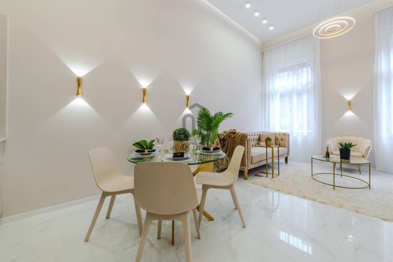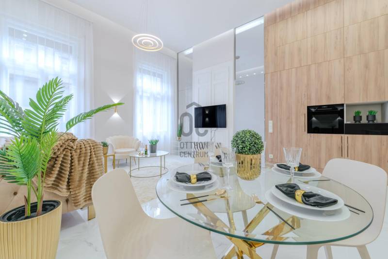 Budapest, XIII. kerület, Szent István Körúton eladó egy stílusos és modern lakás. Az ingatlan a város egyik keresett környékén található, kiváló közlekedési lehetőségekkel és számos kényelmi szolgáltatással a közelben.Ingatlan jellemzői:-Elhelyezkedés: Budapest, XIII. kerület, Szent István Körút-Ház típusa: „Budapest100” épület-A négyemeletes épület kétszárnyú, díszes kovácsolt vas kapuján belépve két nagy méretű lámpára és a keresztboltozatos mennyezet díszes festésére leszünk figyelmesek. Az ornamentikus festésű falfelületeket rozettás sávok választják el egymástól. Balra a liftet, jobbra pedig a főlépcsőház bejáratát találjuk.-Kialakítás: Tágas nappali, 2 hálószoba-Konyha és fürdőszoba: Teljesen felszerelt és modern-Egyéb jellemzők: Kiváló állapot, frissen felújítvaLakás részletei:-Az elegáns minőségi anyagokkal kiépített nappali tágas és világos, modern bútorokkal berendezve, ideális helyszín a pihenésre és szórakozásra.-Két hálószoba kényelmes elrendezéssel rendelkezik, alkalmas családok, párok vagy akár home office kialakítására.-A konyha teljesen felszerelt, modern konyhabútorokkal és kiváló minőségű készülékekkel. Bosch beépített gépek-A fürdőszoba stílusos és praktikus, Arezzo Design prémium szaniterekkel és csempékkel.-Az ingatlan frissen felújított, így az új tulajdonosnak csak beköltöznie kell.-Szülői háló elegáns egyedi beépített „en suite” gardróbé és design zuhannyal felszerelt fürdővel.-A vendégszoba egyedi galériával alatta elegáns „en suite” fürdővel kialakított.Környék és Infrastruktúra:-A XIII. kerület kiváló infrastruktúrával rendelkezik, számos étterem, üzlet és szolgáltatás található a közelben.-A tömegközlekedés kiváló, a metróállomások, busz- és villamosmegállók könnyen elérhetők.-Az ingatlan közelében iskolák, óvodák és parkok is megtalálhatók.A ház mögötti utcában teremgarázs hely bérelhető!Ha modern és kényelmes lakásra vágyik Budapest egyik népszerű környékén, akkor ez az ingatlan Önnek lehet ideális választás. Kérjük, vegye fel velünk a kapcsolatot további információkért vagy időpont egyeztetés céljából.