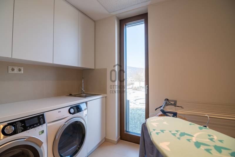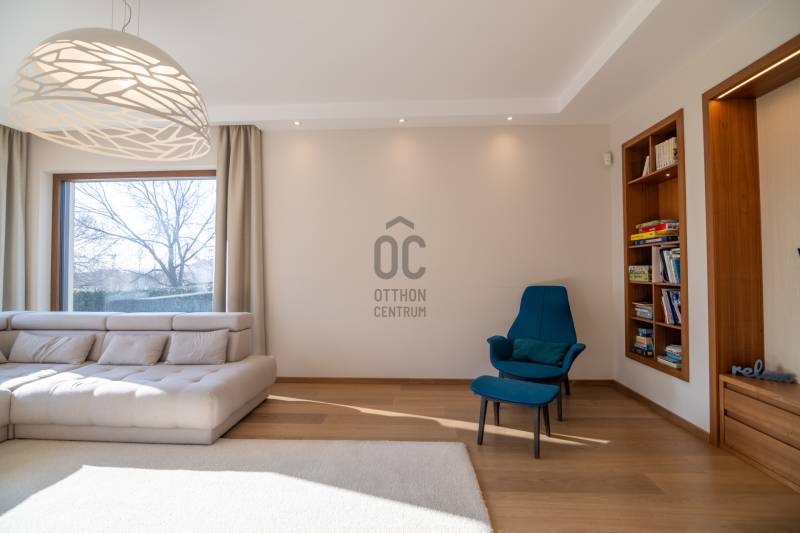 Prémium modern családi ház 2 nappalival, 7 szobával, szaunával – Madárhegy legszebb részén, örök panorámávalBudapest XI. kerületének egyik legkeresettebb, exkluzív lakóövezetében, Madárhegy csendes, rendezett utcájában kínálunk megvételre egy valóban különleges, modern minimál stílusú családi házat. Az ingatlan ritka értéke a teljes intimitás, a természet közelsége és az a nyugalom, amely hosszú távon is stabil értéket és élhető mindennapokat biztosít.Ez az otthon nemcsak méreteiben, hanem gondolkodásmódjában is prémium: két tágas nappalival, hét különálló szobával, szaunával és energiatudatos, alacsony fenntartású műszaki megoldásokkal készült – mindazzal, amire egy modern, családközpontú élethez szükség van.Főbb méretek, alapadatokTeljes lakóterület: 323 nmTerasz: 61 nmErkély: 37 nmKert: kb. 1400 nmTelek mérete: 1661 nmGarázs: 2 autó részére, zártFöldszint – a közös élmények tereA földszint szíve a nagyvonalúan megnyitott nappali–étkező–konyha egység, ahol a háromrétegű, nagyméretű üvegfelületek természetes fényt és közvetlen kapcsolatot biztosítanak a terasszal és a kerttel. Ezek a nyitott terek ideálisak a család számára: közös étkezésekhez, beszélgetésekhez, ünnepekhez vagy akár baráti összejövetelekhez.Földszint:Előtér: 9,15 nmNappali: 32 nmÉtkező: 17,6 nmKonyha: 13,7 nmWC: 3,3 nmDolgozószoba / vendégszoba: 14 nmSportszoba / spórolásra is alkalmas multifunkciós szoba: 18 nmGarázs: 37 nmA földszinti sportszoba igény szerint alakítható edzőtérnek, hobbihelyiségnek vagy akár energiatakarékos tároló- és gépészeti kiegészítő térnek, így a ház működése hosszú távon is gazdaságos marad.Emelet – privát terek és nyugalomAz emeleten kapott helyet a második nappali, amely tökéletes családi pihenőtér, gyerekeknek kialakított lounge vagy csendes esti kikapcsolódás helyszíne lehet. A szint elrendezése ideális nagycsalád számára is: minden hálószoba világos, jól bútorozható és funkcionálisan elkülönül.Közlekedő: 12,4 nmFürdőszoba: 7,7 nmSzobák: 13,5 nm | 13,6 nm | 13,5 nm | 21 nmSzülői háló: 17 nm – teraszkapcsolattal és panorámávalVendégszoba: 9,2 nmSzülői fürdő: 13,2 nmA szülői háló saját, prémium felszereltségű fürdővel és közvetlen teraszkapcsolattal rendelkezik, ahonnan zavartalan kilátás nyílik a zöld környezetre. A földszinten kialakított szauna a mindennapok részévé teszi a pihenést és a regenerálódást.A magas minőségben kialakított konyhát egyedileg gyártott, praktikus beépített bútorok, AEG háztartási gépek és indukciós főzőlap teszik teljessé, míg a bárszékek kellemes teret biztosítanak a kötetlen konyhai beszélgetésekhez. A mindennapi komfortot vízlágyító rendszer és padlófűtés biztosítja.Az enteriőr hangulatát gondosan megtervezett világítás, dizájner lámpák és igényesen kiválasztott burkolatok határozzák meg, amelyek minden részletükben az esztétikumot és a minőséget képviselik. A háztartási helyiség beépített szekrényekkel és praktikus pakolófelületekkel segíti a mosó- és szárítógép melletti házimunkát.Az ingatlan teljes bútorzattal kerül értékesítésre, mivel a berendezések jelentős része egyedileg gyártott, kifejezetten ehhez az otthonhoz tervezett darab.Környezet és elhelyezkedésMadárhegy egyik legnagyobb értéke az egységes utcakép, az alacsony beépítettség és a zöld környezet. A házat utcafronti növényfal védi, így a kert és a terasz teljes privát szférát biztosít.Rövid időn belül elérhetők:több óvoda és bölcsődekiváló állami és magániskolák, valamint nemzetközi intézmények Újbudánbevásárlási lehetőségek, sport- és kirándulóhelyekA környék presztízse folyamatosan növekszik, ami az ingatlant nemcsak szerethető otthonná, hanem biztos hosszú távú befektetéssé is teszi.Műszaki tartalom – energiatudatos prémiumDaikin 11 kW-os hőszivattyú – mennyezethűtés-fűtés és padlófűtésHelios hővisszanyerős szellőztető rendszerLoxone okosotthon rendszer – fűtés, hűtés, árnyékolás telefonról vezérelhetőSchneider ipari kategóriás elektromos elosztó9,5 kW-os napelemes rendszer 8 kW-os Huawei inverterrel.Szaldó elszámolás 2030-igÁtlagos villanyszámla: kb. 5.000 Ft/hóTeljeskörű medence-előkészítés a kertbenEz az ingatlan azoknak készült, akik nem kompromisszumot keresnek, hanem minőséget, tágas közös tereket, családi élményeket és hosszú távon fenntartható megoldásokat Budapest egyik legjobb részén.Vegye fel velem a kapcsolatot, és egyeztessünk egy személyes megtekintést – ez az otthon élőben mutatja meg igazán, miért lehet könnyű beleszeretni.
