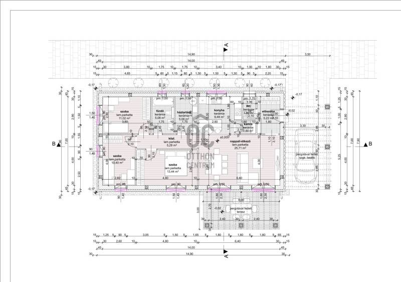 Székesfehérváron Maroshegyen, 434 m2-es saját telekkel, ÚJ ÉPÍTÉSŰ, DK-i tájolású nettó 94,1 0 nm-es 3 hálószobás, nappali-konyha-étkezős, teraszos családi ház eladó!Rövid műszaki leírás: 3. ház* Telek:434 nm* Amerikai konyhás nappali étkezővel, 3 szoba, fürdőszoba, 2 illemhelység, terasz, 1 fedett kocsibeálló* 94,1 nm hasznos alapterület + 18 nm-es pergolával fedett terasz* A ház 30 cm vastag Leier 30 N+F tégla falazattal, 15 cm homlokzati hőszigeteléssel, 12 cm aljzatszigeteléssel, 30 cm üveggyapot padlásszigeteléssel épül* Fűtés: padlófűtés, az épület hőellátása levegő-víz hőszivattyúról történik* Tető 30 fokos nyeregtetős, fa födémes, beton tetőcseréppel fedett* Igény esetén napelem rendszer is telepíthető* Fehér 3 rétegű műanyag nyílászárók kerülnek beépítésre, redőnnyel, szúnyoghálóval felszerelve* Elektromos hálózat 3*25A* Burkolat: konyhában, közlekedő részen, fürdőszobában, mellékhelyiségben járólap, nappaliban, szobákban laminált parketta, terasz térkövezett* Épület körül kavics járda szegélykő, külső terasz térkő burkolat + gépkocsibeállóKörnyék:Az épületek családi házas, kertvárosias környezetben helyezkednek el. A környéken bölcsőde, óvoda, iskola, orvosi rendelő, gyógyszertár és bevásárlóközpont is megtalálható.A részletekkel kapcsolatban keressen bizalommal!Ha a vásárláshoz a jelenlegi ingatlana eladására van szükség, akkor abban is szívesen együttműködöm Önnel!Amennyiben hitelre van szüksége, az Otthon Centrum az ország egyik legnagyobb és legmegbízhatóbb hitelközvetítőjeként, teljes körű és díjmentes hitel ügyintézéssel áll ügyfelei rendelkezésére.