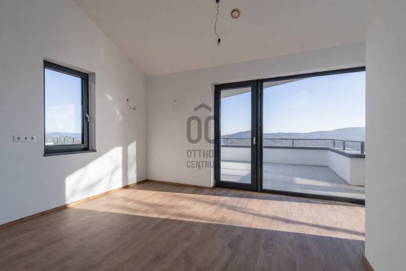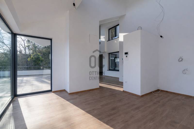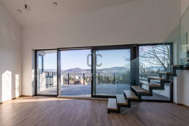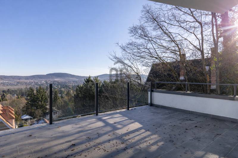 Ha olyan otthont keresel, ahol a panoráma nem alkalmi élmény, hanem a mindennapok természetes része, akkor ezt a lakást érdemes megnézned.ÜDV ITTHON!A II. kerület egyik legszebb, zöldövezeti részén, Budaligeten, egy mindössze háromlakásos, intim társasház legfelső szintjén kínálunk megvételre egy belső kétszintes, panorámás DUPLEX penthouse-t, közvetlen erdőkapcsolattal. Itt valóban megérkezik az ember: csend, zöld, fény és tér veszi körül.Üdv itthon!A lakás nettó 103 m²-es (bruttó 124 m²) belső tere nagyvonalú és átgondolt, amelyhez három terasz kapcsolódik, összesen 64 m² alapterülettel. A teraszok és az óriási üvegfelületek miatt a természet folyamatosan jelen van – reggel madárcsicsergéssel indul a nap, este a panoráma nyugtató látványával zárul.Tér, ami élményt adAz alsó szinten egy világos, tágas nappali–konyha–étkező tér kapott helyet, amely ideális mind a hétköznapokhoz, mind vendégek fogadásához. Innen több terasz is közvetlenül elérhető, így a kinti és benti terek szinte összeolvadnak.Ezen a szinten található egy hálószoba, gardrób és fürdőszoba is – tökéletes vendég- vagy dolgozószobának.A felső szint már a teljes nyugalomé: egy különálló hálószoba saját gardróbbal és fürdőszobával, ahol a tér igazi különlegessége a teljes üvegfal. Ez a megoldás vizuálisan összeköti a szinteket, miközben egészen egyedi, modern hangulatot ad – ritka, látványos és nagyon „penthouse-érzés”.Luxus, ami nem hivalkodik – csak működikA lakás műszaki tartalma valóban felső kategória, minden kompromisszum nélkül:Panasonic hőszivattyús rendszerPadlófűtés és mennyezethűtés a tökéletes hőérzetértHővisszanyerős szellőztető rendszerHáromrétegű, reflexiós üvegezésű nyílászárókElektromos ablaknyitásDigitális videós kaputelefon és riasztórendszerKözponti vízszűrő rendszerLakásonként 3×32A elektromos teljesítményElektromos autótöltéshez kiépített háromfázisú csatlakozásA házban 6 személyes hidraulikus lift szolgálja a kényelmet.A lakáshoz 2 garázsbeálló és egy 14 m²-es tároló tartozik (külön megvásárolandók).Kinek ideális ez az otthon?Annak, aki:szereti, ha a természet szó szerint karnyújtásnyira van,értékeli a csendet, a panorámát és az intimitást,nem tömegingatlant keres, hanem egyedi, ritka lehetőséget,hosszú távon gondolkodik, és tudja, hogy az ilyen adottságú ingatlan mindig érték marad.Hívj!