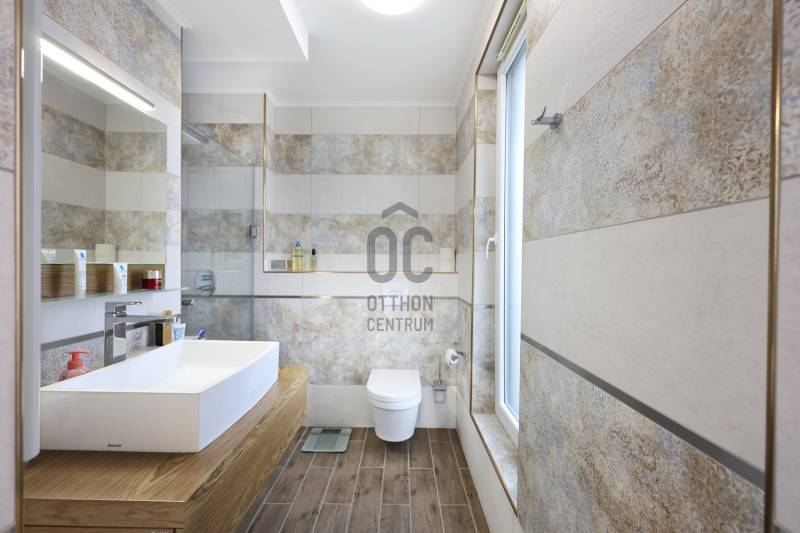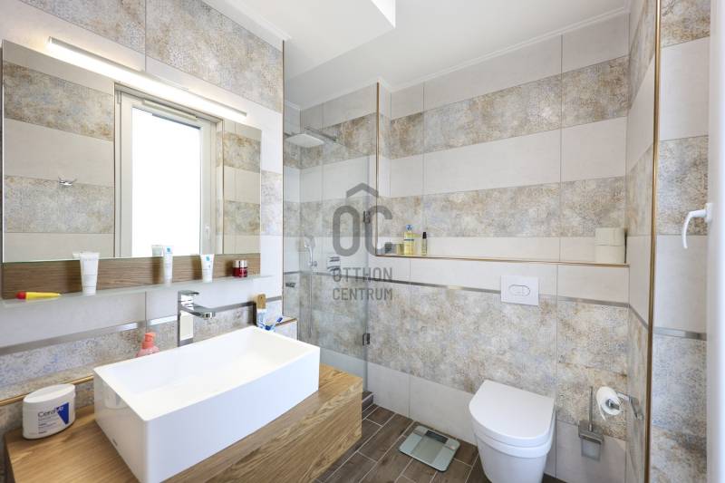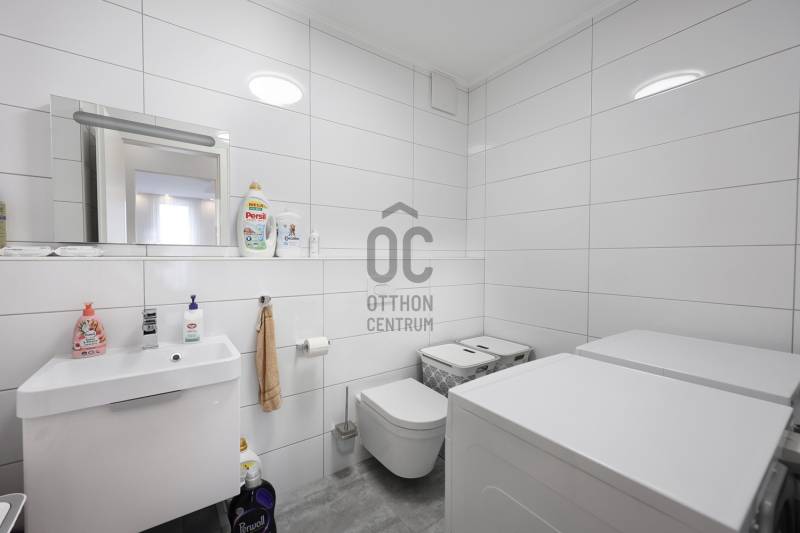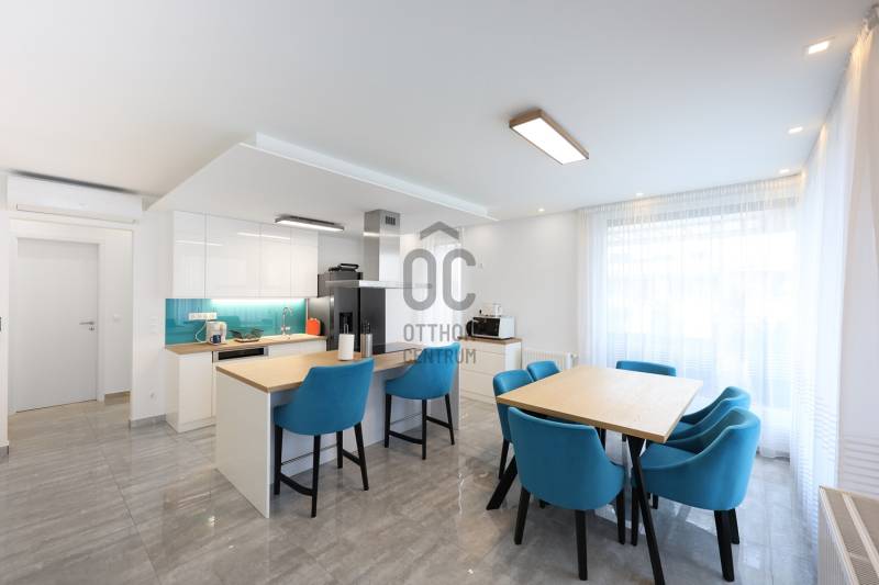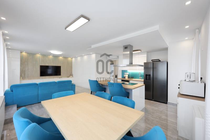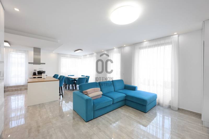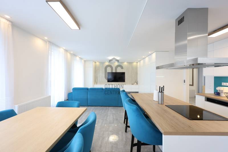 Fedezd fel ezt a kivételes, családok számára ideális lakást Budapest 14. kerületében, Alsórákoson! Ez az újszerű ingatlan nemcsak hogy kiváló állapotban van, de minden részletében a prémium kivitelezés és az egyedi tervezés jegyében készült. Az ingatlan alapterülete 119 nm, négy tágas szobával és két fürdőszobával rendelkezik, így bőven van hely a család minden tagjának. Az amerikai konyhás, konyhaszigetes nappali világos és barátságos, ideális helyszín a közös családi programokhoz. A modern beépített bútorok és szekrények, valamint a motoros redőnyök a kényelmet és a praktikumot szolgálják. A lakás különlegessége a 120 nm-es terasz, ahol a gyönyörű panoráma mellett élvezheted a friss levegőt és a csendes kertvárosi környezetet. A terszon körben nagy méretű kaspók kerültek , telefonról vezérelhető locslórendszerrel. Az ingatlan tehermentes, így azonnal birtokba vehető, és a házközponti fűtés egyedi méréssel biztosítja a kényelmes hőmérsékletet, míg a klíma a nyári hónapokban nyújt kellemes hűsítést.Az ingatlan vételára tartalmazza a teljes bútorzatot is. A környék ellátottsága kiváló, a közeli boltok, iskolák és óvodák mindössze pár percnyire találhatóak, így a mindennapi ügyintézés rendkívül egyszerű. A kitűnő közlekedésnek köszönhetően könnyedén elérheted a város többi részét, legyen szó autós vagy tömegközlekedési lehetőségekről. A csendes utcák és a biztonságos környezet ideális helyszínt biztosítanak a családosok számára, ahol a gyerekek biztonságban játszhatnak. Ez a lakás nemcsak otthon, hanem befektetési lehetőség is, hiszen a környék folyamatosan fejlődik, a kereslet pedig stabil. Van lehetőség kettő darab gépkocsibeálló helyet vásárólni teremgarázsban. Ha kérdéseid lennének az ingatlannal kapcsolatban, vagy szeretnéd megtekinteni, bátran keress meg! Bizalommal állok rendelkezésedre, hogy segítségedre legyek a legjobb döntés meghozatalában. Ne hagyd ki ezt a páratlan lehetőséget, hiszen egy ilyen ingatlan ritkán kerül a piacra!