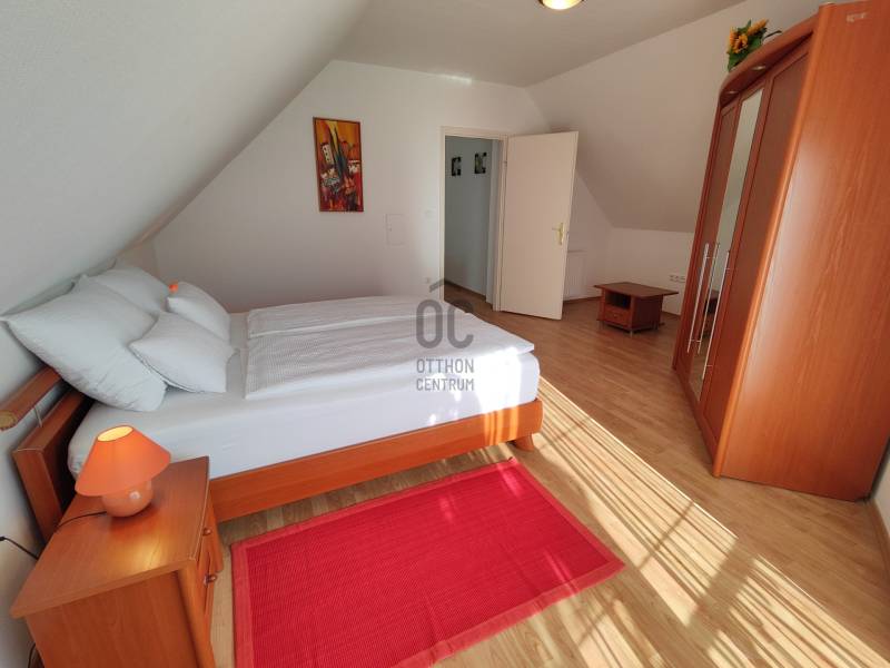 Zalakaroson, egyedi tervezés alapján minőségi anyagokból épült házat kínálok eladásra.A fürdőváros egyik kedvenc utcájában közel a központhoz, mégis csendes helyen. Ráadásul a keleti oldalról gyönyörű kilátás nyílik a környező zalai dombságra.2000-ben, 30 cm-es Porotherm téglából épült és 10 cm-es homlokzati hőszigetelést is kapott.Ezeknek köszönhetően a cirkó gázkazánnal és cserépkályha fűtéssel gazdaságosan fenntartható.A nyílászárók műanyagok, a hálószobákban szúnyoghálók is vannak.A gondos tulajdonosoknak köszönhetően a folyamatosan karbantartott épület állapota újszerű.Helyiségei: 1 nappali konyhával és étkezővel (itt található a cserépkályha is), 4 szoba, 2 fürdőszoba, gardrób helyiség, lépcsőház,tároló, garázs. A hátsó fedett terasz mellett épített grillező található.A kert gondozott, díszcserjékkel és gyümölcsfákkal.A vételár a megkímélt és minőségi anyagokból készült berendezéseket is tartalmazza.Előre egyeztetett időpontban megtekinthető, várom megtisztelő hívását!Az adatok kizárólag a megbízóink által rendelkezésünkre bocsátott információkon alapulnak.Fentiekre tekintettel, az adatok teljességéért, helyességéért és aktualitásáért nem vállalunk felelősséget.Az árváltozás, adatmódosítás és közbeni értékesítés jogát fenntartjuk, mindezekért jogi felelősséget nem áll módunkban vállalni.