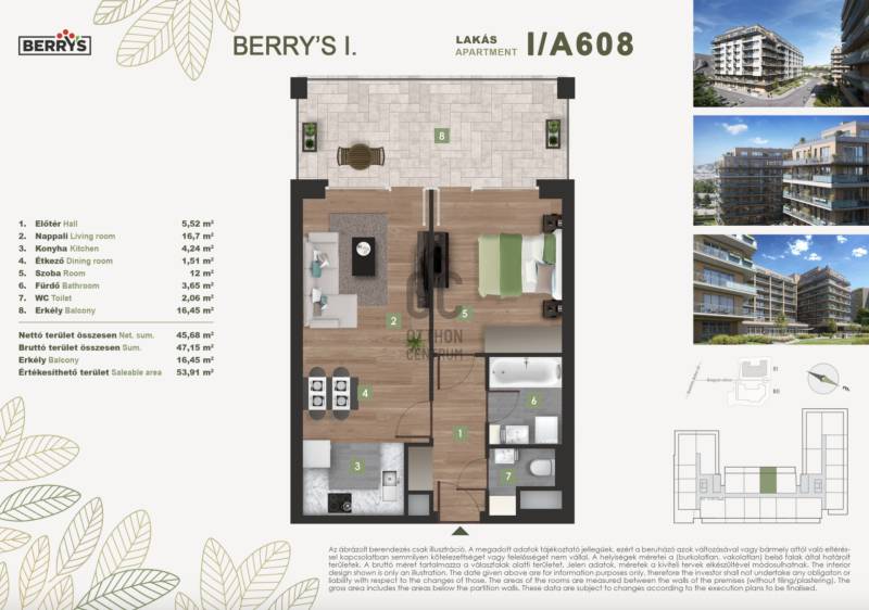 Projekt bemutatásaA XI. kerületi Bartók Béla úthoz közel épülő lakópark egy csendes, nyugodt környezetet kínál a város forgatagához közel. Az újbudai városrészben kialakított új lakónegyed kiváló közlekedési kapcsolatokkal rendelkezik. A zsákutcából nyíló elhelyezkedés biztosítja a forgalommentes, zavartalan lakókörnyezeti életet.A lakópark elhelyezkedése ideális azok számára, akik gyorsan és kényelmesen szeretnék elérni a város bármely pontját. A 4-es metró közelsége, az 1-2 perc sétatávolságra elérhető villamosok és a környéken közlekedő nappali és éjszakai autóbuszjáratok kiváló közlekedési lehetőséget biztosítanak. Az M1-es és M7-es autópályák közelsége, vagy a Kelenföld vasútállomás megkönnyíti az ország minden részébe, kiemelten a Balatonhoz és a Velencei tóhoz tervezett utazásokat.A legmodernebb mennyezeti hűtő- fűtő rendszernek köszönhetően alacsony fenntartási költségek várnak. A zöldtetők és az épület körüli zöldterületek nemcsak természetes hőszigetelést adnak, de a közösségi életet is támogatják.A gyönyörű kilátás nyugalma a városi nyüzsgés harmóniájával. A Berry’s minden lakásához tartozik loggia, erkély, vagy terasz!Várható műszaki átadás: 2027 vége