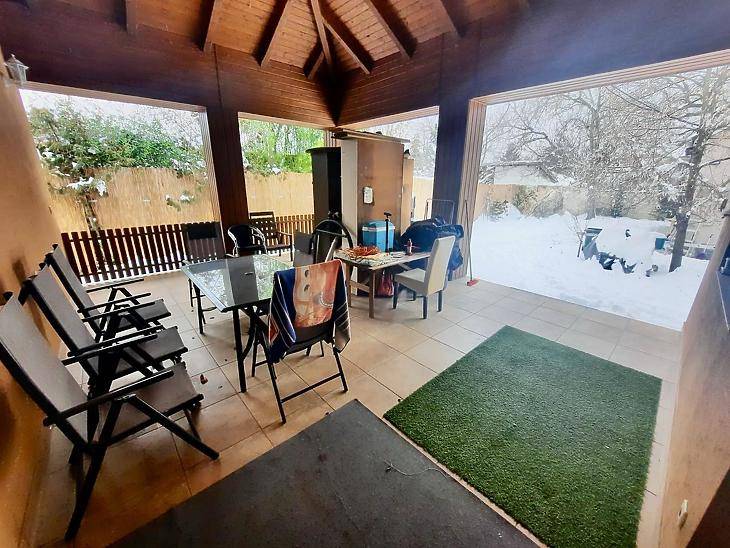 Dunakeszi közkedvelt Szabadságligeti részén, egy csendes, eldugott utcában kínálunk megvételre egy kiváló adottságokkal, jó állapotokkal rendelkező családi házat. Az ingatlan nyugodt lakóövezetben helyezkedik el, távol a főút forgalmától, így a mindennapokat zavartalan pihenés és kellemes környezet jellemzi.A ház kialakítása ideális választás nagycsaládosok számára, de két generáció együttélésére is tökéletes megoldást nyújt, mivel az ingatlan funkcionálisan két, egymástól elkülönülő lakóegységből áll.Az első házrészben egy tágas amerikai konyhás nappali és 3 külön nyíló szoba, valamint egy fürdőszoba külön wc-vel, illetve egy kis spájz került kialakításra, míg az udvar hátsó részében egy különálló, ház épült, amelyben további 4 szoba, fürdőszoba, konyha található, amely akár továbbá szét választható különálló lakásokra. Mindkét lakóegység külön bejárattal rendelkezik, így az együttélés zavartalan, mégis közelséget biztosít a családtagok számára.A lakóingatlanhoz saját, fedett autóbeálló tartozik, a kert gondozását pedig fúrt kút segíti.Az épület külsőleg 10 cm-es hőszigetelést kapott, melynek köszönhetően az ingatlan alacsony rezsiköltséggel üzemeltethető.Az ingatlanban egy nagy teljesítményű hűtő-fűtő klíma került beszerelésre, fűtése radiátoros hőleadással és padlófűtéssel is ellátott.A környék barátságos, rendezett, kiválóan alkalmas családok számára, akik értékelik a csendet, ugyanakkor fontos számukra Dunakeszi jó infrastruktúrája és könnyű megközelíthetősége.Kérdésével, illetve megtekintési szándékával keresse irodánkat! Amennyiben hitelre lenne szüksége, profi hitelközvetítő kollégáink díjmentesen állnak rendelkezésére.