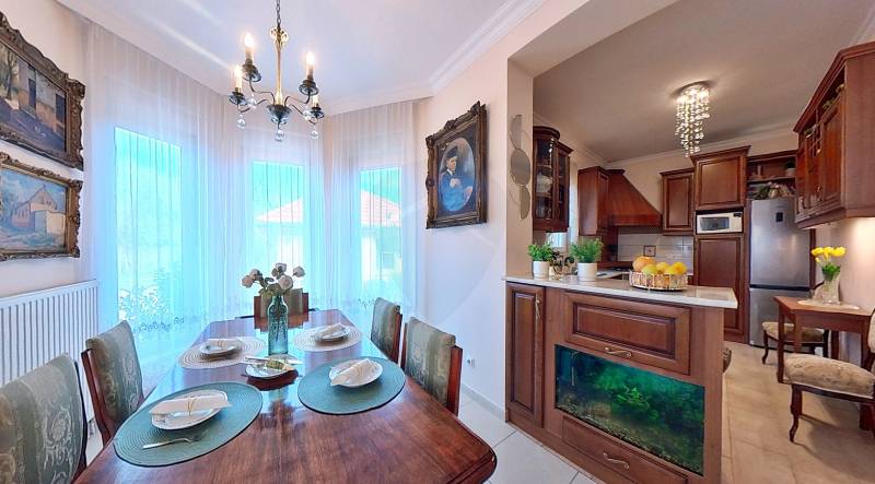 Kecskemét Vacsiköz városrészében, kínálunk eladásra egy igazán különleges, exkluzív családi otthont, amely minden igényt kielégít. Ez a lakóingatlan 113 négyzetméteres alapterületével és 760 négyzetméteres telek méretével tökéletes választás lehet családosok számára, akik a nyugalmat és a kényelmet keresik. Az ingatlanban három világos hálószoba található, amelyek tágasak és barátságosak, ideálisak a családi élethez. A fürdőszoba modern, a lakás állapota pedig kiváló, így Önnek nem kell a felújítással bajlódnia. A ház szívében egy amerikai konyhás nappali helyezkedik el, amely a családi összejövetelek és baráti találkozók tökéletes színtere lehet. A nappalihoz tartozik egy gyönyörű kandalló is, amely nemcsak a téli estéket varázsolja meghitté, hanem egyedi hangulatot is ad az otthonnak. A 30 négyzetméteres terasz ideális helyszín a reggeli kávé elfogyasztásához vagy a nyári grillezésekhez, ahol a család és barátok együtt tölthetik az időt. Az ingatlanhoz önálló garázs tartozik, amely két autó számára biztosít kényelmes parkolási lehetőséget. Az automata öntözőrendszer gondoskodik a szépen karbantartott kert folyamatos zöldelléséről, így Önnek nem kell az időjárás miatt aggódnia. A környék rendkívül felkapott, hiszen csendes utcái és barátságos szomszédai ideális környezetet biztosítanak a családok számára.Kecskemét városának központja csupán néhány perc autóútra található, ahol minden szükséges szolgáltatás elérhető: boltok, éttermek, iskolák és egészségügyi intézmények. A tömegközlekedés is kiváló, így könnyedén elérheti a város többi részét. A Vacsiköz városrész biztonságos és nyugodt, ideális helyszín a gyermekek felnevelésére, hiszen a környéken számos játszótér és zöld terület található, ahol a kicsik szabadon játszhatnak. Birtokba-adási idő: 1 hónapA ház HOME STAGING szakemeber segítségével lett berendezve, ezt a szolgáltatást a leendő vevő is igénybe veheti. Az ingatlan 360°-s képeit megtekintheti a facebook / Felföldi Mihály Ingatlanszakértő powered by Rock Home oldalon.Amennyiben felkeltette érdeklődését ez a kiváló ingatlan, ne habozzon, keressen bizalommal! Szívesen válaszolok minden kérdésére, és segítek Önnek a legjobb döntés meghozatalában. Az otthonkeresés izgalmas, és mi itt vagyunk, hogy támogassuk Önt ezen az úton!