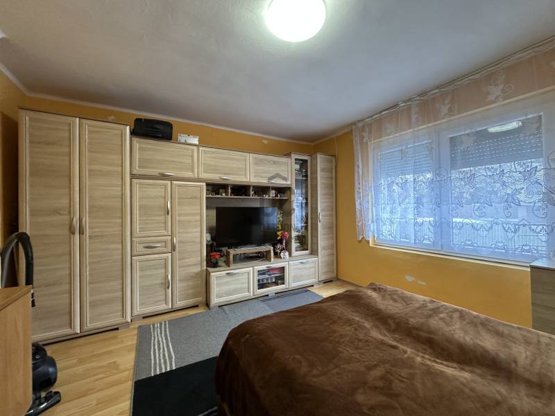 Székesfehérváron, Harmatos völgy szélén, 3 szintes, nappali és 2 szobás családi ház eladó.Mindhárom szint lakáson belül érhető el.Szuterén (29,4m2): egy fűtött, tágas konyha-étkező, egy kamra és egy pincehelységből állFöldszint (47,4m2): előszoba, étkező és konyha egy légtérben helyezkedik el. Innen nyílik még egy szoba, egy fürdő-WC és lépcsőház, mely a szuterénbe vezet.Tetőtér (12,4m2): az előszobából lenyitható lépcsőn lehet feljutni. Közlekedő és egy nagy szoba fogad bennünket.Szobák laminált burkolatuak, többi helyiség járólapozott.A ház 83-ban épült tégla falazattal, vasveton födémmel és pala tetővel. 2015-ben bővitették a jelen állapotára, szigetelték a tetőteret és új Lindab héjazatot kapott.Ablakok fa és műanyag szerkezetüek. Fűtés gázkonvektorokkal, hűtő/fűtő klímával és szilárd tüzelésü kályhával van biztosítva. Melegvizet kettő villanybojler adja.Az épülethez kapcsolódik egy 25m2-es tágas nyári konyha.2 autó védett tárolásáról is gondoskodott a tulajdonos. A garázsba autómata úszókapun, fedett beállóba egy másik uszókapun lehet behajtani.Ide tartozik még egy 16,5m2-es műhely. A műhelyben és a nyárikonyhában kiépítették a 3X16A áromellátást.Kertben számos termő gyümőlcsfa lett telepítve:cseresznye, őszibarack, sárgabarack,meggy, szeder, körte, naspolya, birs, szőlő és málna is megtalálható.Öntözése egy biztos hozamú fúrt kútról történikMegközelíthetőség: autóbusz megálló csak egy percre van. M7 autópálya 7 perc alatt elérhető.