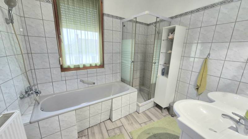 Baján kedvelt részen, a Belváros szélén, eladó egy 143 nm-es, kétszintes, téglaépítésű családi ház. Az ingatlan 1985-ben épült. A földszinten tágas nappali, beépített konyha, hálószoba, fürdőszoba, valamint mosókonyha biztosítja a kényelmes mindennapokat. Az emeleten két hálószoba, fürdőszoba és egy tároló került kialakításra. Az egyik szobából egy 4 nm-es erkély nyílik.A szobák laminált burkolattal rendelkeznek, a ház állapota kiváló. Műszaki felszereltségét tekintve az ingatlan 12 cm-es vastagságban hőszigetelt, hőszigetelt fa nyílászárókkal, új kondenzációs gázkazánnal, valamint riasztórendszerrel ellátott, ami energiatakarékos és biztonságos működést garantál.A házhoz garázs is tartozik, valamint egy 15 nm-es terasz, grillező, amely tökéletes helyszíne lehet családi ebédeknek, baráti összejöveteleknek vagy egy nyugodt reggeli kávézásnak. A kellemes, otthonos környezet ideális teret biztosít a közös pillanatokhoz és a mindennapi kikapcsolódáshoz.Ideális választás családok számára, akik nyugodt környezetben, mégis jó elhelyezkedéssel keresnek minőségi otthont.Irányár: 88.000.000 Ft