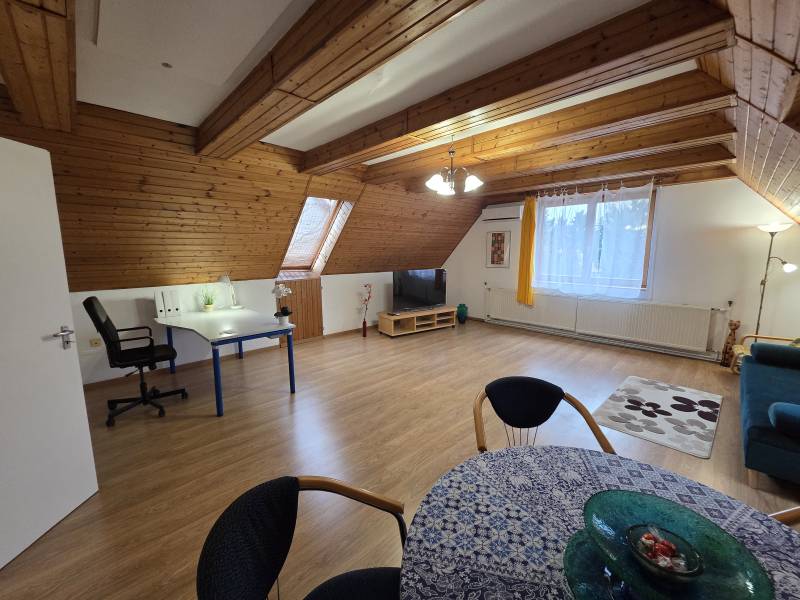 A XI. kerületben a Neszmélyi úton családi ház külön bejáratú tetőterében egy 80 m2-es 1 + 2 félszobás bútorozott, gépesített lakás kiadó!Belső kocsibeálló tartozik hozzá!A nappali nagyon nagy, a két félszoba egymásból nyílik. A fürdőszoba zuhanyfülkés.A szobák parkettázottak, a vizes helyiségek járólaposak. Az egész lakás frissen kifestett.Fűtése radiátoros cirkó fűtésKÖZÖS KÖLTSÉG NINCS, MINDEN REZSI ÖNÁLLÓAN MÉRHETŐ!A lakás világos, napos, dél-nyugati tájolású, légkondicionált.Azonnal költözhető, min. 1 évre kiadó, a bérléshez kéthavi kaució és a tárgyhavi bérleti díj szükséges.Az ingatlan max. 2 főnek kiadó, állat kizáró ok!Bármikor megtekinthető!