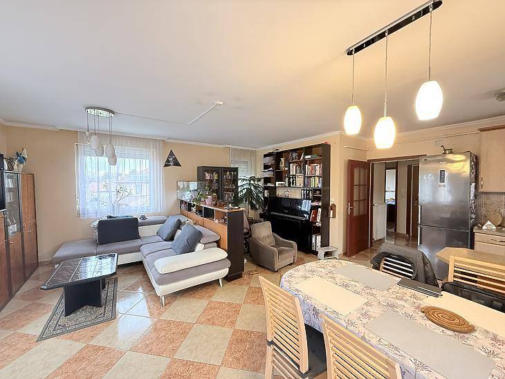 Budapest XVI. kerületében, Rákosszentmihály kedvelt, nyugodt részén eladó egy belső két szintes, jó elosztású, 120 m²-es, amerikai konyhás nappali + 4 és fél szobás lakás, első emeleti elhelyezkedéssel, tégla építésű, szigetelt társas házban. Környék:Hangulatos, csendes környezet, kiváló infrastruktúrával. Tömegközlekedési és bevásárlási lehetőségek pár perc sétával elérhetők.Az épület:A 2005-ben épült, mindössze 4 lakásos, rendezett társas ház jó lakóközösséggel rendelkezik.A lakás jellemzői:A szobák külön nyílóak, laminált burkolattal, míg a konyha és a vizes helyiségek járólaposak. A fűtésről turbós kombi cirkó gondoskodik egyedi méréssel. Az alsó szinten műanyag, a tetőtérben fa nyílászárók találhatók, redőnnyel ellátva. A lakás duplakomfortos: az alsó szinten kádas fürdőszoba, míg az emeleten zuhanyzós fürdőszoba és külön mellékhelyiség került kialakításra. A 6 m²-es erkély a nappaliból közvetlenül megközelíthető, kellemes kültéri életteret biztosít. A beépített bútorok a vételár részét képezik.Elrendezés:Alsó szint:előszoba, amerikai konyhás nappali, hálószoba, fürdőszoba, külön mellékhelyiség, erkélyFelső szint:előtér, négy szoba, gardrób, fürdőszoba, külön mellékhelyiségKözlekedés:A közelben pár perc sétára elérhetők a 31, 92, 92A, 130, 131, 144, 231 és 996-os buszjáratok.Finanszírozás:Az ingatlan tehermentes, banki hitellel is megvásárolható, melyhez irodánk ingyenes hiteltanácsadást biztosít.Irányár: 141,9 M FtAz ár tartalmazza a mélygarázst és a tárolót.Vevőink részére a közvetítés díjtalan!A hirdetésben szereplő adatok tájékoztató jellegűek.