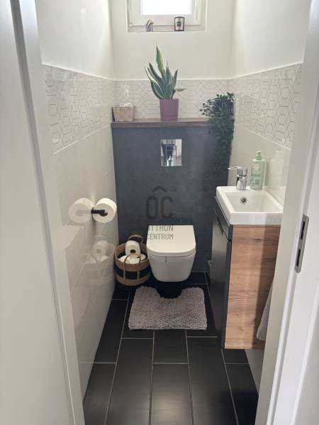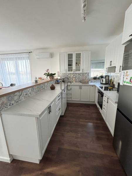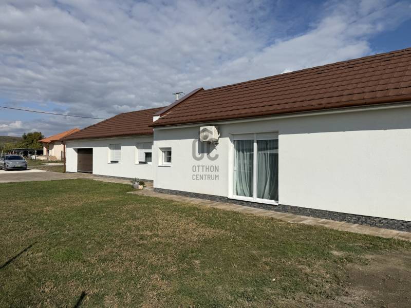 Modern, alacsony rezsijű családi ház panorámával eladó Vilonyán!Vilonya csupán 10 percre a Balatontól!- Vilonya csendes, új építésű részén eladó egy nettó 125 m²-es, egy szintes, újszerű családi ház, amely ideális választás azoknak, akik modern otthont keresnek természetközeli, nyugodt környezetben, mégis kiváló elérhetőséggel!- Az ingatlan 2022-ben épült, 1001 m²-es telken, délkeleti tájolással, gyönyörű panorámás kilátással. - A Balaton mindössze 10 km-re, Veszprém 15 km-re, az M7-es autópálya pedig kb. 20 percre található.Főbb jellemzők:- 125 m² lakótér- Amerikai konyhás nappali + 4 külön nyíló szoba- 2 fürdőszoba, WC külön és egyben is- 35 m²-es terasz- 36 m²-es, 2 állásos garázs elektromos kapuval (az árban benne van)- 150 m² térkövezett autóbeálló és járdaAzonnal költözhető!Műszaki tartalom:- Ytong falazat (25 cm) + 15 cm grafitos hőszigetelés- 30 cm födémszigetelés, 15 cm aljzatszigetelés- Minőségi nyílászárók elektromos redőnyökkel- Elektromos fűtés, kiegészítve 2 db klímával- Melegvíz-ellátás: Ariston hőszivattyús bojler- Rendkívül alacsony rezsi (kb. 20–30.000 Ft/hó)Környezet és infrastruktúra:- Gyönyörű újépítésű házak között, 10 percre a Balatontól- Aszfaltos úton megközelíthető, nyugodt, falusias környezet. - A településen belül sétatávolságra park, modern játszótér, óvoda, bolt és orvosi rendelő is elérhető.Extra információk:- Előkészített kamera- és riasztórendszer- Elektromos kapu és kerítés jelenleg kb. 60%-os készültségbenCSOK Plusz igényelhető!3%-os támogatott, Otthon Start Program hitelre jogosult!
