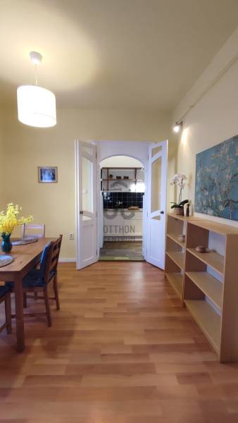 Teljesen berendezett és felszerelt, másfél szobás, 45 m2-es lakás a Garay Bevásárló Központtól egy percre hosszú távra kiadó.A lakás különleges elosztásának köszönhetően rendkívül napfényes. Az ablakok két ház közötti, fás, csendes zöld udvar felé nyílnak így a nyugalmat nem zavarja a forgalom zaja.A teret egy galériával bővítették ahol a háló kapott helyet. A nyári meleget mobilklíma teszi elviselhetővé.A modern konyha technikailag teljesen felszerelt, még egy kis tároló s tartozik hozzá.Egyedülállónak vagy párnak kiváló választás.A társasház rendezett, a lakóközösség barátságos.A lakást jelenleg festik és felújítják. Február 25-től megtekinthető.- bérleti díj 225 ezer forint/hó + rezsi,- 2 havi kaució, az első havi bérleti díj szükséges szerződéskötéskor,- dohányzás és kisállat tartás nem megengedett.Az ingatlan március 1-től költözhető.A Városliget, a Szécsényi fürdő,valamint az Állatkert is séta távolságra van, éppúgy mint az Állatorvosi Tudományegyetem és a McDaniel főiskola Bevásárlási lehetőségként a Garai Centert ajánlom.A lakás nagyon könnyen megközelíthető: trolik, buszok, a metró perceken belül, a belváros pedig 10 percen belül elérhető.A környéken számos étterem, kávézó, bevásárlási lehetőség… egyszóval a belváros adta minden előny elérhető.Budapest, Pest,7. kerület, VII: kerület, kiadó, lakás, tégla, bútorozott, 2 szobás, klíma, Városliget,, Garay Center