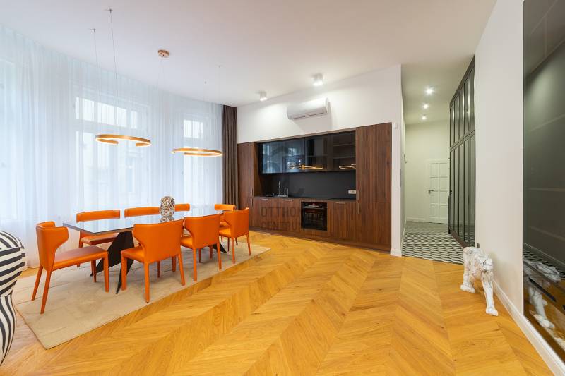 Az INT Interior Design Awards egy rangos, nemzetközi szintű szakmai elismerés, amely a kiemelkedő belsőépítészeti formatervezést, a térkompozíciók harmóniáját és az innovatív megoldásokat díjazza világszerte.A világhírű belsőépítészek díjazott munkái közé, egy magyar belsőépítész is keze munkája is bekerült az alábbi otthonnal.A lakás enteriőrje a modern luxust, a kozmopolita életérzést és az időtálló eleganciát ötvözi.AZ ÉPÜLETRŐLA lakás egy klasszikus, korabeli társasházban található, amely a 20. század közepén épült és ma is őrzi a belvárosi bérházakra jellemző karaktert. Az épület jellegzetes, nagypolgári arányokkal és méretarányokkal bír, így belső tereiben és külső megjelenésében egyaránt érezhető a történeti háttér és a városi elegancia.FŐBB JELLEMZŐK:- 93 m² alapterület, közel 50 m²-es nappali–konyha–étkező térrel- 2 külön nyíló hálószoba és 2 fürdőszoba- Több mint 3 méteres belmagasság- Kandalló, a nappali látványos központi eleme- Teljesen berendezett, azonnal költözhető / kiadható állapot- Belsőépítész által tervezett, egyedi design megoldások- Prémium burkolatok: chevron tölgyparketta, márványhatású nagylapok, exkluzív kerámiák- Egyedi, füstüveg frontos beépített szekrények az előszobában és hálószobákban- Díjnyertes bútorzat és gondosan válogatott designkiegészítők- Saroklakás, déli és keleti tájolással, kiváló természetes fényviszonyokkalA prémium minőségű, egyedi tervezésű bútorzat, designlámpák, burkolatok és kiegészítők összértéke megközelítőleg 24 millió forint, amely a vételár részét képezi. A berendezésben olyan ikonikus darabok is megtalálhatók, mint a Gaetano Pesce által tervezett Up 50 fotel, valamint neves gyártók termékei.A bútorzat és a teljes berendezés összértéke 24 MFT, ami a vételáron felül értendő és KÖTELEZŐEN MEGVÁSÁROLANDÓ.LOKÁCIÓ ÉS KÖZLEKEDÉSBudapest belvárosának szívében, az V. kerületben, díjnyertes belsőépítészeti koncepció alapján kialakított lakás. A környék a belvárosi életstílus minden előnyét kínálja:- prémium éttermek, kávézók, üzletek- kulturális intézmények, galériák- Duna-part, Váci utca és Deák tér néhány perc sétával elérhetőKözlekedés:- Ferenciek tere és Deák Ferenc tér 5–8 perc sétára- M1, M2, M3 metróvonalak gyors elérhetőséggel- Számos busz- és villamosjárat a közelben- Kiváló autós és kerékpáros megközelítésA lokáció ideális mind saját célra, mind befektetésként, rövid- vagy hosszútávú bérbeadásra.MŰSZAKI FELSZERELTSÉG- Teljes körű műszaki felújítás – minden gépészeti és elektromos rendszer, vezeték és csőhálózat új- Műszakilag is teljes mértékig felújított állapot, - Teljesen gépesített, egyedi tervezésű konyha prémium készülékekkel- Bordázott bútorfront, kompaktlemez munkapult, fekete kiegészítők- Magas minőségű klímaberendezés- Beépített riasztórendszer- Több ponton záródó biztonsági bejárati ajtó- Modern elektromos és gépészeti hálózat- Dupla mosdós, lebegő fürdőszobabútor- Füstüveg fallal határolt, nyitott fürdőtér a fő hálószobában- Egyedi világítási koncepció, hangulat- és funkcionális fényekkelA lakás minden részletében az ergonómia, a funkcionalitás és az esztétikum egysége érvényesül. A bútorok, beépített elemek és válaszfalak már a tervezési fázisban a maximális helykihasználás és komfort érdekében kerültek kialakításra.Felmerülő kérdéssel vagy megtekintéssel kapcsolatban, kérem egyeztessünk!Vevő ügyfeleink számára díjmentes, bankfüggetlen hiteltanácsadással biztosítjuk, hogy a számukra legkedvezőbb finanszírozási döntéseket hozhassák meg. Emellett opcionálisan igénybe vehető kiegészítő szolgáltatásaink – például ügyvédi közreműködés, energetikai tanúsítvány vagy villamos biztonsági felülvizsgálat – teljes körű szakmai támogatást nyújtanak az adásvétel minden egyes lépésénél.