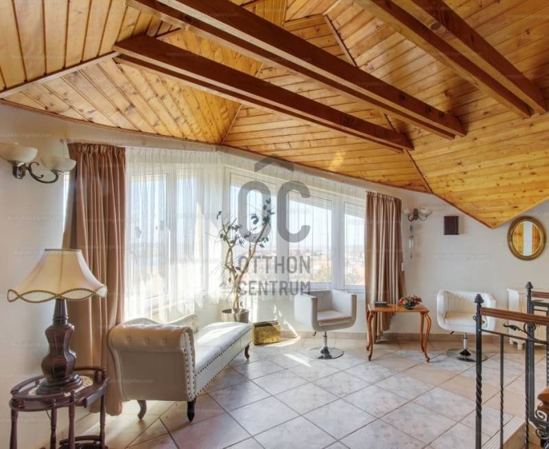 ÖRÖK PANORÁMÁS, ENERGIATAKARÉKOS LUXUS VILLA BIATORBÁGYON – 340 NM, KASTÉLYJELLEGŰ MEGJELENÉSSELBudapesttől mindössze 14 km-re, Biatorbágy egyik csendes, elegáns mellékutcájában kínálunk megvételre egy különleges, háromszintes, 400 nm-es villaépületet, amely örök panorámával, kiemelkedően alacsony rezsiköltséggel és sokoldalú hasznosítási lehetőségekkel rendelkezik.FENNTARTHATÓ LUXUS – AKÁR NULLA FORINTOS FŰTÉSSZÁMLAA villa energiahatékony működését egy 18 kW teljesítményű, 22 optimalizálóval felszerelt napelemrendszer, valamint svéd Energy Save hőszivattyúk (13 kW és 11 kW) biztosítják.Ennek köszönhetően az ingatlan rezsiköltsége extrém alacsony, az áramköltség gyakorlatilag nullára csökkenthető.További műszaki előnyök:20 cm üveggyapot tetőszigetelésBramac tetőcserépKorszerű rézvezetékelés (teljes felújítás: 2006)5 db klíma (ebből 3 LG hűtő-fűtő klíma a felső szinten)automata Hunter öntözőrendszerszakszerűen kiépített szikkasztórendszer (2018)belső terek friss festése (2024)RUGALMAS TÉRKIALAKÍTÁS – MAGÁNCÉLRA ÉS VÁLLALKOZÁSRA IS IDEÁLISAz ingatlan kiválóan alkalmas:exkluzív magánrezidenciánaknagycsaládosoknak, akár két külön lakrésszelrendelőnek, bentlakásos intézménynekcégközpontnak vagy irodai funkcióraA háromszintes épülethez 900 nm-es, örökzöldekkel parkosított kert tartozik.A főbejárat a középső szintre vezet, míg az alsó szint külön bejáratról is megközelíthető, ami tovább növeli a hasznosíthatóságot.HELYISÉGKIOSZTÁS3 nappali6 külön bejáratú szoba2 teljesen felszerelt, gépesített konyha3 fürdőszoba4 WC (bidé, piszoár)dolgozószobaháztartási helyiségkazánház70 nm-es márvány teraszgarázs + kültéri parkolókPRÉMIUM EXTRÁK ÉS ELEGÁNS RÉSZLETEKkovácsoltvas korlátokstukkók, boltívekhidromasszázs sarokkád, zuhanykabinantik tükrökriasztórendszerszökőkútautomata, fűthető garázszárt beálló 2–3 autó számáratérkövezett udvari parkoló további 3 autónakKERT ÉS ÉLETTÉR – PANORÁMA A BIAI-TÓRAA 70 nm-es terasz és a dúsan zöldellő, intim kert tökéletes helyszínt biztosít pihenéshez, családi és baráti összejövetelekhez.A Biai-tó lenyűgöző látványa a mindennapok része, miközben a környezet maximális nyugalmat és privát életteret nyújt.LOKÁCIÓ – NYUGALOM ÉS KIVÁLÓ INFRASTRUKTÚRABudapest gyorsan elérhető az M1/M7 autópályákonLovaglási lehetőségek Sóskúton és Etyekenwellness és úszási lehetőség Herceghalmonegész éves borkóstolási programok Etyeken