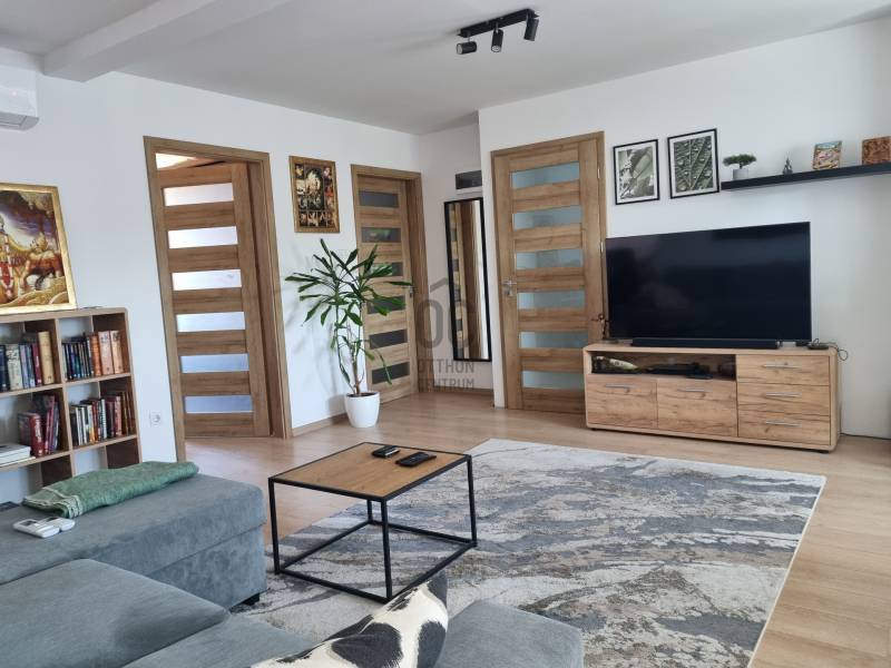 Kiváló befektetés! 1 ház 3db lakás! Debrecenben a Csapókert belvároshoz közel eső részén az Egyetemi Campustól 900m-re 3 szintes teljeskörűen felújított lakóingatlan eladó. Telek mérete 449m2, az épület nettó hasznos alapterülete 232m2 három szinten +12m2 fa tároló. Az ingatlan egy nagy 3 szintes családi ház amiben szintenként külön-külön 80m2es lakás/apartmann talàlhatók, saját önálló bejárattal, konyhával és fürdőszobával így akár befektetésnek is kiváló mivel 3 önálló lakás kiadására van lehetőség. A villany és víz szintenként külön mérővel rendelkezik. A szintek egybe is összenyithatók így kiválóan alkalmas üzleti tevékenységre akár telephelynek, irodakompleszumnak is amit még tovább fokoz, hogy a ház sarokteleken helyezkedik el és riasztóberendezéssel és kamerarendszerrel van ellátva. Az udvar térkövezett és akár 6 db autónak van lehetőség parkolásra a telken belül amihez a bejárását 2db elektromos tólókapu biztosítja. A fűtést és melegvízet 1db gázkazán és egy nagyobb melegvízes puffer tartály látja el mindhárom szintnek, amik radiátorokkal van szerelve. Minden szinten minden fontosabb helyiségben hűtő-fűtő klíma van, tehát akár az egész ingatlan fűtése megoldható légkondícionálóval is. Az épület szigetelt.Az épület 2023 ban teljesen fel lett újítva csak a szerkezet maradt a régi. Új nyílászárók, új vízvezeték, villannyvezetèk és fűtési rendszer, új tető, új burkolatok és szigetelés, új térkő. A telken található egy nagyobb fa tároló is. A kert füvesített és a keritésnél végig Leylandi fenyők vannak ültetve. A kerten elektromos öntözőrendszer található ami fúrott kútból nyeri a vizet. Az ingatlan riasztóval és kültéri biztonsági kamerával felszerelt, informatikai hálózata végpontokkal van ellátva, úgy, hogy a szinteket összekötése is biztosított. Helyiségek elosztása Földszint: halószoba, étkező/nappali, nagy szoba, konyha, előtér+gardrob, wc, fürdőszoba összesen 2db klímaberendezés emelet: 2db szoba és egy nagy szoba, előtér, wc, fürdőszoba, konyha+étkező+kis tároló összesen 4db klímaberendezés tetőtér: 2db szoba, dolgozó sarok, nappali+étkező, konyha, wc, fürdőszoba összesen 3db klímaberendezés