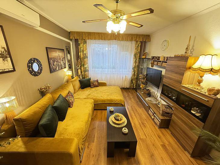 Újpesten, a Lázár Ervin Ált. Iskola közelében, csendes, parkos környezetben, karbantartott, liftes társasház III. emeletén, eladásra kínálunk jó állapotú, 53 nm-es, 2 szobás elosztású, erkélyes panellakást. Az ingatlan 1/1-es tulajdonban van. Átadási ideje: 120-180 nap! Közös költsége: 16.000.- Ft/hó.A társasházban megtörtént a bejárati kapuk, a postaládák és a lépcsőházi burkolatok cseréje. A lakásban megtörtént a villanyhálózat korszerűsítése. Több ponton záródó biztonsági bejárati ajtót, valamint redőnnyel felszerelt, thermo üveges, műanyag keretes nyílászárókat építettek be. A fürdőszobát járólappal burkolták, a többi helyiségben laminált padlót helyeztek le. A fűtőtesteket egyedi hőmennyiségmérővel látták el. Az elszámolás fogyasztás alapján is történhet, jelenlegi átalánydíja 16.000.- Ft/hó. A nagyobb komfortérzet kialakítása érdekében a nappaliba felszereltek egy hűtő-fűtő inverteres légkondicionáló berendezést is. Pár percen belül Penny, Spar, Pepco, iskolák, óvodák, gyógyszertár, posta, pékség, cukrászda, parkok, játszóterek, valamint egyéb szolgáltatók és szolgáltatások mind fellelhetők. A közelben megtalálható a 20E, 30-as, 104-es, 204-es, 196-os, 170-es, 120-as, 121-es, 25-ös busz, valamint a 12-es, 14-es villamos megállója. Újpest-központ és az M3-as metróállomás gyalog 10 perc alatt elérhető. A belváros tömegközlekedéssel és autóval egyaránt rövid időn belül megközelíthető.A hirdetésben szereplő adatok tájékoztató jellegűek! Egyes ingatlanjaink esetében csere és ingatlanbeszámítás is lehetséges. Továbbá ügyfeleink részére keresünk eladó ingatlant, tulajdonrészt, vagy haszonélvezeti joggal terhelt ingatlant Budapesten és az agglomerációban. A részletekről kérjük érdeklődjön telefonon.Bankfüggetlen hiteltanácsadóink az ország összes pénzintézete közül gyorsan és gördülékenyen találják meg az Önnek legmegfelelőbb konstrukciót, egyedi, személyre szabott kedvezményekkel.A KÖZVETÍTÉS VEVŐINK RÉSZÉRE DÍJMENTES!