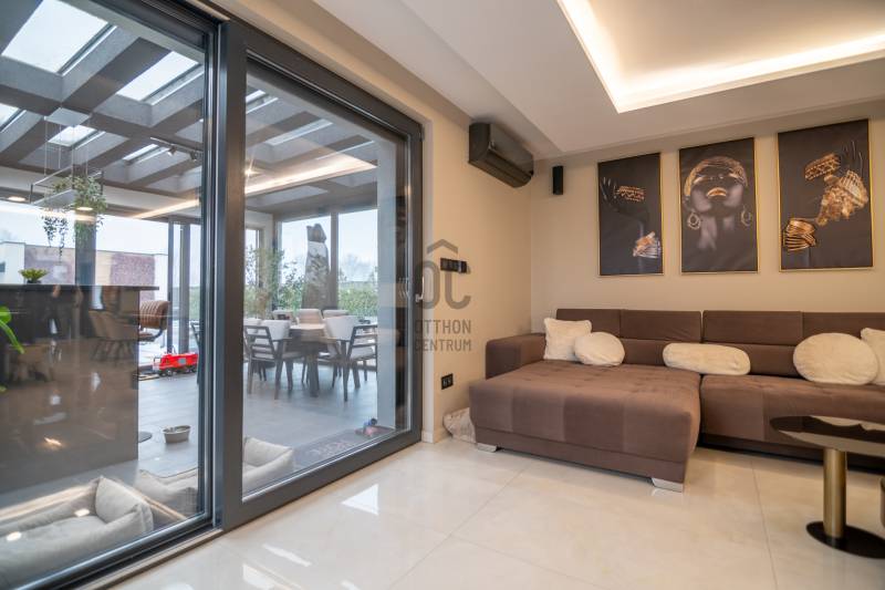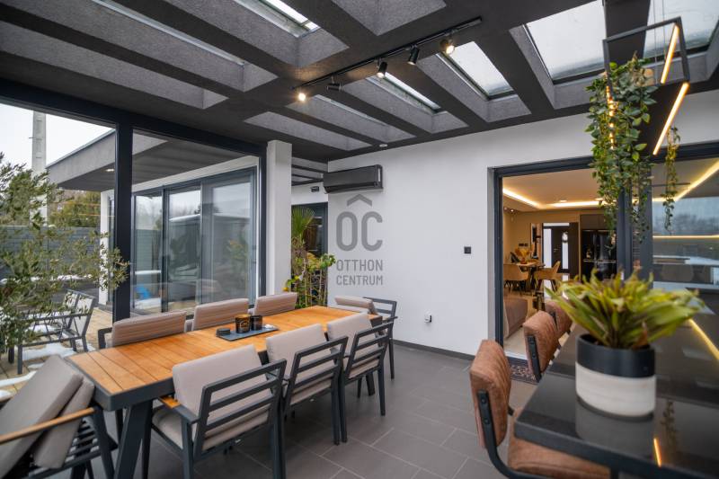 Exkluzív luxus családi rezidencia eladó Dabasi - Hernádon – kompromisszumok nélküli életstílusHernád egyik legnyugodtabb, presztízsértékű részén kínáljuk megvételre ezt a kivételes adottságokkal rendelkező, prémium felszereltségű luxus családi házat, amely minden részletében a minőséget, a kényelmet és a modern technológiát képviseli.Az 363 m² alapterületű, kifogástalan állapotú ingatlan egy 1500 m²-es, gondosan kialakított telken helyezkedik el, és ideális választás mind exkluzív otthont kereső családok, mind értékálló befektetést keresők számára.A rezidencia négy tágas szobával, nappalival amerikai konyhával és 3 elegáns fürdőszobával rendelkezik, ahol a terek arányai és a funkcionális elrendezés a magas életszínvonalat szolgálják.Privát teraszélmények72 m²-es földszinti, fedett, zárt télikert – egész évben használható, reprezentatív élettér80 m²-es emeleti terasz, teljes felületén prémium műfű borítással, zavartalan pihenésre és kikapcsolódásra tervezveParkolás & tárolás – diszkréten megoldva2 gépkocsi számára kialakított fedett beálló, exkluzív méhsejtes LED világítássalA beálló mellett praktikus, esztétikus kerti tárolóBiztonság & intelligens otthonrendszerA ház teljes körű, professzionális védelemmel ellátott:HikVision kamerarendszer (5 kamera, ebből 1 kihangosítható)HikVision kaputelefon24 órás távfelügyeletre kötött biztonsági rendszerParadox hőérzékelőkMozgás- és nyitásérzékelők minden helyiségben és nyílászárónUjjlenyomatos és kódos prémium Marshall bejárati ajtóBelső terek – technológia és eleganciaDesign konyha rejtett szagelszívóval és LED megvilágítással, nyitásérzékelő Elektromos redőnyökAutomata víztisztító rendszerKülön kialakított edzőtér klímával, szellőztető rendszerrel, TV-vel és hangrendszerrelWellness & életstílusFűtött, tengervizes úszómedence, ellenáramoltatóvalMedencéhez tartozó külső zuhanyzóSüllyesztett sütögető – grillezési és bográcsozási lehetőséggelKültéri finn szauna (210x400)A kert végében elhelyezkedő, 40 m²-es, teljesen felszerelt, önálló edzőterem – privát fitness élmény kompromisszumok nélkülKert – fenntartható luxusFúrt kútról működő automata öntözőrendszerHusqvarna Automower 415X robotfűnyíróHangulatos, gondosan megtervezett kerti díszvilágításZárt terasz – a rezidencia ékköveKandalló és pizzasütőTeljes értékű, prémium kültéri konyha szigettel, sütővel és vaslappalHáromrétegű, hőszigetelt üvegtető2×2 szárnyú, elhúzható nyílászárók szúnyoghálóval→ tökéletes helyszín exkluzív vacsorákhoz, baráti összejövetelekhez, minden évszakbanJövőbiztos megoldásokHuawei 3 fázisú, 22 kW-os elektromos autó töltőFűtés, hűtésLevegő-víz hőszivattyúPadlófűtésKlíma hűtésBelső levegő keringetés300 literes, meleg víz bojlerEz az ingatlan nem csupán egy ház, hanem egy tudatosan megtervezett, magas műszaki és esztétikai színvonalú életstílus-rezidencia, ahol a luxus természetes módon válik a mindennapok részévé.Letisztult vonalak, intelligens megoldások és privát luxus – mindez egy harmonikus egésszé formálva. Ez az otthon nem követi a trendeket, hanem szintet képvisel.Az ilyen lehetőségek ritkán kerülnek piacra.Megtekintés kizárólag előzetes egyeztetés alapján.