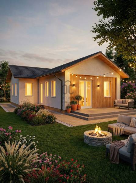 Képzeld el, hogy egy új otthon vár rád Siófok csendes és barátságos Sóstó városrészében.Ez a prémium kivitelezésű, modern ház tökéletes választás családosok számára, akik értékelik a világos tereket és a kényelmet. Az ingatlan alapterülete 71,26 nm, amely három tágas szobát és egy fürdőszobát foglal magában, így ideális helyet biztosít a családi élethez. A házhoz tartozik két terasz is, ahol élvezheted a nyári estéket és a napsütést. A kert lehetőséget ad a gyerekeknek a szabadban való játékra, míg te a friss levegőn pihenhetsz. Az ingatlan állapota kiváló, a hőszivattyús padlófűtés, a klímás hűtés és a dryvit szigetelés gondoskodik arról, hogy az otthonod mindig kellemes hőmérsékletű legyen, függetlenül az évszaktól. A modern dizájn és a világos belső terek egyedi hangulatot teremtenek, ami minden családtag számára vonzó lehet. A környék csendessége és biztonsága ideális környezetet biztosít a gyermekek számára. A közlekedési lehetőségek is kiválóak: könnyen megközelíthető a város központja, ahol minden szükséges szolgáltatás megtalálható, legyen szó boltokról, éttermekről vagy iskolákról. Az autóval közlekedők számára pedig a főbb utak közelsége biztosítja a gyors elérhetőséget. Ez az ingatlan nem csupán egy ház, hanem egy lehetőség, hogy egy új életet kezdj a családoddal egy csodás környezetben, de befektetésnek is ideális, ha szezonális ház kiadásban gondolkodik a jövőbeni tulajdonos.A Balaton, a legközelebbi szabadstrand kb. 15 perces gyalogútra van, két irányból is megközelíthető. Ezen a telken két egyforma ház épül, melyek önállóak, a telek pedig osztatlan közös tulajdon lesz ügyvédi használati megosztással. Mindkét házhoz egy kb. 430 nm-es telekrész, kert fog tartozni. Az egyik ház a Léda utca felől, a másik pedig a Luca utca felől, önállóan lesz megközelíthető.Műszaki leírásAlapozás: betonacél, C 20/25Falazás: főfalak - ytong 30 cm, válaszfalak - ytong 10 cmSzigetelés: 15 cm dryvit rendszer, a födém 20 cm üveggyapot szigetelés és gipszkartonFödém: könnyű szerkezetű, nem járhatóTetőszerkezet: fenyő fűrészáru, ácsolt építésűFedés: cserép (antracit)Nyílászárók: 3 rétegű, hőszigetelt műanyag ablakok és bejárat ajtó (fehérek) - redőny, szúnyogháló nincsBeltéri ajtók: több színből választható dekorfóliás ajtókBurkolatok: szobákban - laminált parketta, konyha-fürdőszoba-wc - csempe és padlólap (választhatóság 5000 Ft/nm értékben)Festés: glettelés-festés 3 rétegben (fehér)Fűtés, hűtés: hőszivattyús padlófűtés és 1 db klíma a nappalibanSzaniterek: 1 db kád (kérésre zuhany értékegyeztetéssel), 2 db wc, 1 db mosdó, 1 db kézmosó (MOFÉM csaptelepekkel)Villanyszerelés: 3 fázis, 3x20A, komplett villanyszerelés szerelvényekkel, gyengeáram kiépítés, H tarifaKörnyezet kialakítás: kerítések, elektromos kis és nagykapu, járdák, lépcsők, földfeltöltés, füvesítés, eső elvezetés a kertbe történikBútorozottság: nem kerül beépítésre semmilyen bútor vagy gépesítés (kivéve természtesen a hűtés-fűtés gépészetet)Ha kérdéseid vannak, vagy szeretnéd megtekinteni ezt a különleges otthont, ne habozz, keress bizalommal!(A képek között a hivatalos alaprajz alapján a mesterséges intelligencia segítségével tervezett látvány alaprajz is látható, tájékoztató jelleggel, valamint egyéb AI látványtervek - a hivatalos látványtervek mellett - szintén kedvcsináló jelleggel!)
