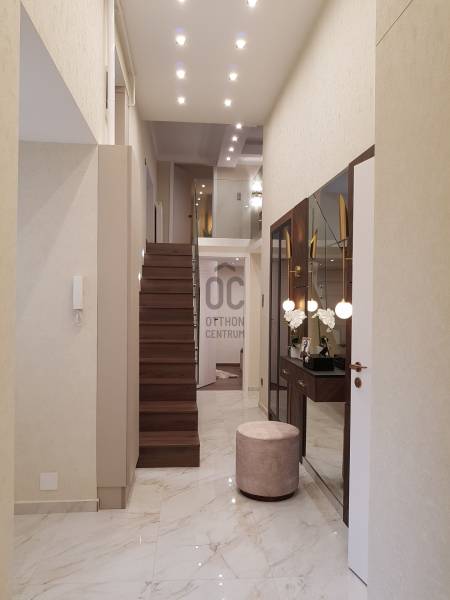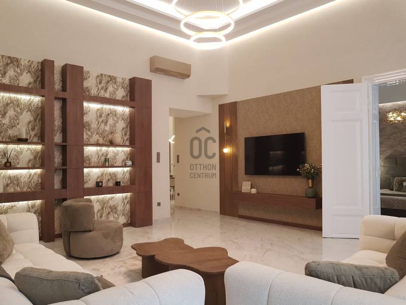 Budapest V. kerületében, a Bank negyedben kínálunk megvételre egy prémium minőségben kivitelezett 152 négyzetméter alapterületű, 187 nm hasznos területű ingatlant.A lakásról:A lakás központi tere az impozáns, közel 40 nm-es nappali, mely a tágas (32nm) konyha-étkezőhöz csatlakozik. A fő hálószoba hozzá kapcsolódó fürdőszobával utcai nézetű, míg a két kisebb hálószobája ( 16 és 10 nm) a belső kertes udvarra néz. A közel 5 méteres belmagasságot kihasználva az udvari \"szárny\" felett épített galéria került kialakításra remek teret adva 3. hálószobának vagy dolgozószobának illetve itt lett berendezve egy mindent elrejtő gardróbszoba. A mindennapi kényelmet további két fürdőszoba biztosítja. A fűtés és a melegvíz ellátás kondenzációs gázkazánnal történik, a hűtésről klímaberendezések gondoskodnak.A lakás minden részteltre kiterjedő felújításon esett át, Ön lehet az első lakója. A képeken látható teljes berendezés a vételár részét képezi.A társasház:Az 1875-ben épült bérház földszint plusz 3 emelettel rendelkezik, lifttel felszerelt. A homlokzata és lépcsőháza átlagos állapotú, tágas belső kertjében több nagy fa és cserje biztosítja a zöld környezetet és a madárcsicsergést a belváros közepén.Környezet:A Bank negyed a város egyik legkeresettebb része, amely számos előnnyel büszkélkedhet. A pezsgő belvárosi részen minden fontos szolgáltatás, üzlet és vendéglátóhely könnyen elérhető. A tömegközlekedés kiváló, a közeli metró- és buszmegállók révén gyorsan eljuthat a város bármely pontjára. Az ingatlan közelében található parkok és zöld területek (Szabadság tér, Erzsébet tér) lehetőséget biztosítanak a pihenésre és a szabadidős tevékenységekre, Parkolni az utcán vagy a közeli mélygarázsok egyikében lehetséges.Az ingatlan sokféle funkcióra alkalmas, így akár családi otthonként, akár befektetési célú ingatlanként, akár irodaként is kiváló választás.Bármilyen kérdése van az ingatlannal vagy megtekintéssel kapcsolatban keressen bizalommal!