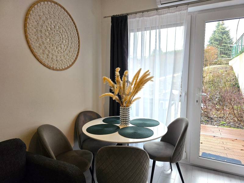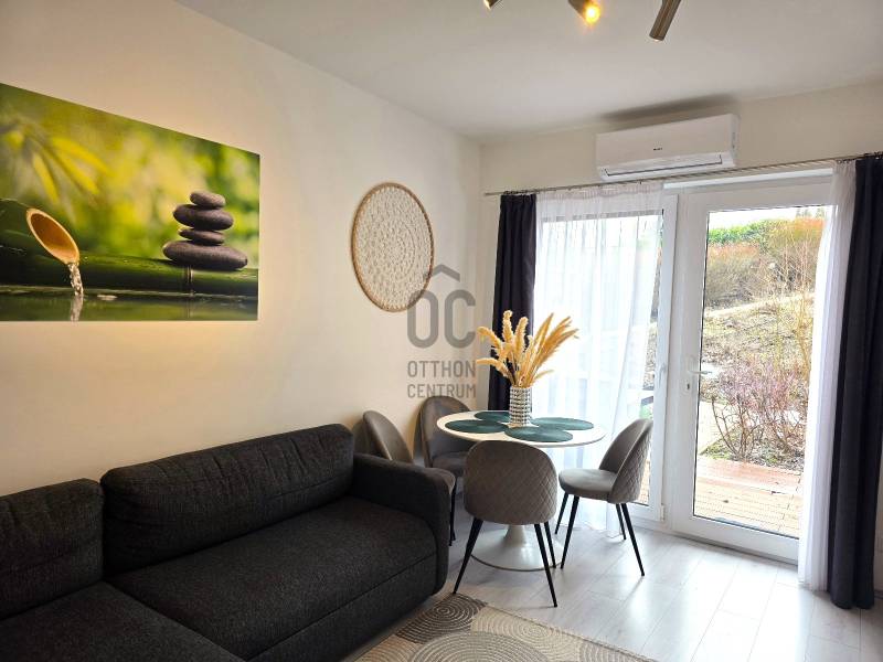 Balatonföldvár villanegyedében, központhoz, Balatonhoz közel kínálunk eladásra egy földszinti, nappali+1 hálószobás kis ÉKSZERDOBOZT.Az épületet 2021-ben teljes körűen felújították úgy, hogy megfeleljen a modern igényeknek és elvárásoknak.Az átépítés folyamán törekedtek arra, hogy a tulajdonosok a legnagyobb kényelemben tölthessék szabad idejüket.Az épület tetején napozóteraszt alakítottak ki, ahonnan gyönyörű kilátás nyílik a Balatonra és az északi partra. Alsó szinten lévő közös helyiségbe mosókonyha található, így nem kellett a lakásokban elhelyezni.A kertben egy kényelmes medence is található, körben napozóágyakkal, a tökéletes kikapcsolódásért.A lakás nettó 32nm, amihez egy déli tájolású, +8nm-es terasz tartozik, amely motoros napernyővel védett.Előnye, hogy szélső lakás, csak egy oldalról van szomszédja.Fűtése-hűtése klímával, illetve kiegészítésnek norvég panellel megoldott. Teljesen bútorozott, így nem kell gondoskodnia a berendezésről, és gyorsan birtokba veheti.A vételáron felül egy autónak parkoló kötelezően megvásárolandó( ára 3millió Ft).Balaton part, éttermek, kávézók, fagyizók 5-10 perc sétával elérhetők. Balatonföldvár a Balaton déli partjának egyik legszebb, legelegánsabb kisvárosa. A XIX. század végén fürdőtelepként kiépült, platánsorokkal és patinás villákkal tarkított üdülőhely, amely sekély vize miatt családbarát célpont. Népszerű vitorláskikötőjéről, a Galambszigetről, Kultkikötőről és a kelta kori földvárról ismert. Amennyiben felkeltettem érdeklődését, keressen a hét bármely napján!