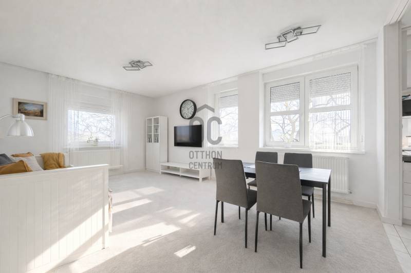 Belváros közelében, rendezett, négyszintes társasház harmadik emeletén kínálunk megvételre egy 63 m²-es, amerikai konyhás nappali + 2 hálószobás, délkeleti tájolású, egyedi cirkófűtéses, kedvező fenntartású téglalakást.Az 1996-ban épült, folyamatosan karbantartott épület tégla szerkezetű, műanyag, hőszigetelt üvegezésű nyílászárókkal készült.A lakások fűtését radiátoros, egyedi cirkórendszer biztosítja.A közös költség 19.000 Ft/hó.A társasház saját, zárt, parkosított belső udvarral rendelkezik, amely kellemes, nyugodt környezetet biztosít a lakók számára.Helyiségek: • tágas előszoba • amerikai konyhás nappali • 2 külön nyíló szoba • fürdőszoba • külön mellékhelyiség kézmosóval • kamra (a konyhából nyílik)Műszaki jellemzők, felújítások: • 2015-ben beépített, korszerű Vaillant gázkazán • 2024-ben cserélt radiátorok • 1x25 A villamos hálózat • klímaberendezés az előszobában • új, biztonsági bejárati ajtó • redőnnyel felszerelt ablakokA burkolatok igényesek és praktikusak: az előszobában, konyha-étkezőben, fürdőszobában, mellékhelyiségben és a kamrában járólap, míg a nappaliban és a hálószobákban fa szalagparketta található.KörnyezetA társasház csendes, nyugodt környezetben helyezkedik el, a közelben bevásárlási lehetőség, iskola és óvoda is megtalálható.MegközelítésAutóval és tömegközlekedéssel egyaránt kiválóan elérhető, a belváros mindössze 5 perc sétára található.#szekesfehervaringatlan #teglalakas #belvaroskozeli #amerikainappali #azonnalkoltozheto