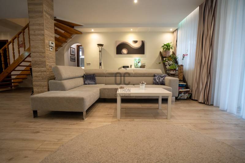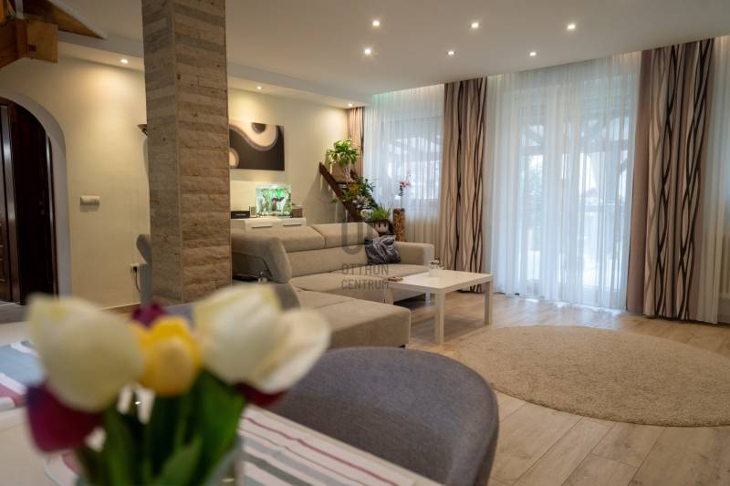Ha egy igazán otthonos és prémium kivitelezésű ingatlant keres, ne menjen tovább, nézze meg ezt a modern, kényelmes otthont! Barátságos, kertvárosi hangulat, zöld környezet, biztonságos utcák, jó szomszédok jellemzik. További információk az ingatlanról:- alapterület: netto 208nm- telek méret: 390nm- zártsorú beépítés- vasbeton sávalap, szilikát falazat, tégla válaszfalak- vasbeton födém, szigetelt tető, zsindely fedés- szigetelt, színezett homlokzat- tágas, világos nappali étkezővel- 4 külön nyíló szoba (háló-, dolgozó-, vendégszoba)- szintenként elegáns, tágas fürdőszoba- festett falak- ízléses burkolatok- modern LED hangulatvilágítás- beépített, gépesített konyha- műanyag, hőszigetelt ablakok redőnnyel felszerelve- fa beltéri ajtók- modern, Hörmann bejárati ajtó- komoly gépészet, több fűtési alternatíva (kondenzációs gázkazán+vízteres kandalló+elektromos padlófűtés)- kiépített riasztó rendszer- egy állású, fűtött garázs- tároló+kazánház+kerti tároló az alsó szinten- hangulatos, fedett terasz (közvetlen kilépés a nappaliból)- gondozott, ápolt kertFelsorolni is nehéz, mit tud még ez az ingatlan?!A ház kiváló helyen található, a környék felkapott, közel a belváros, autóval is egyszerű megközelíteni. Ha biztonságos helyen színvonalas, elegáns ingatlant keresnek Tiszaújvárosban, jöjjön el, nézze meg ezt a családi otthont, garantáltan beleszeret!bank semleges hitelügyintézés, biztonságos jogi háttér, energetikai tanúsítvány, villamoshálózati felülvizsgálat