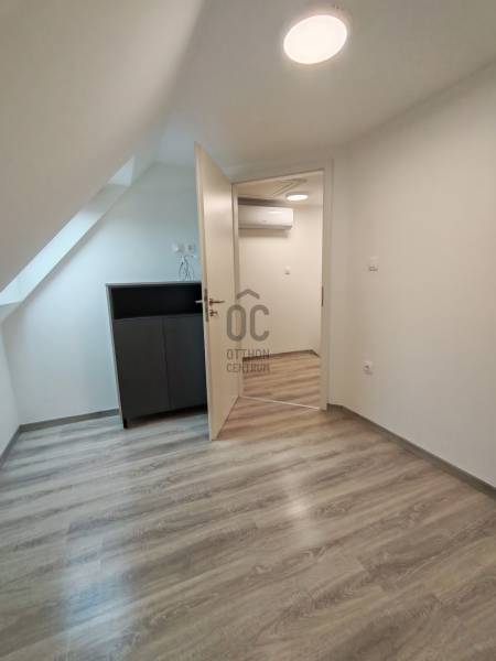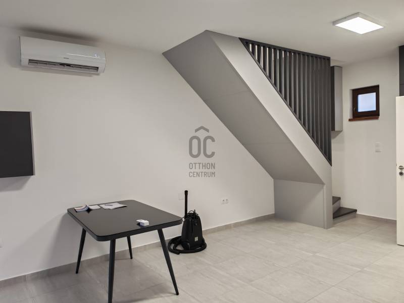Eladó egy modern 40 m²-es, kétszintes, újszerű állapotú lakás, letisztult stílussal.Az alsó szinten található a konyha - étkező és nappal, amely világos, jól tagolt térrel rendelkezik.A konyha modern, beépített bútorokkal és gépekkel felszerelt. Ezen a szinten található a zuhanyzós fürdőszoba WC-vel, igényes burkolatokkal, valamint a lépcsőfeljáró.A felső szinten két különálló hálószoba kapott helyet, tetőtéri kialakítással. A ferde síkok hangulatosak, a helyiségek jól használhatók, természetes fénnyel tetőablakokkal megvilágítottak. Beépített szekrények, praktikus helykihasználást.A lakásra jellemző:modern, semleges színvilágminőségi burkolatokklímaberendezésletisztult, minimalista belső térkiváló elosztás kis alapterület mellett isIdeális választás fiatal pároknak, kis családnak vagy befektetésnek is.