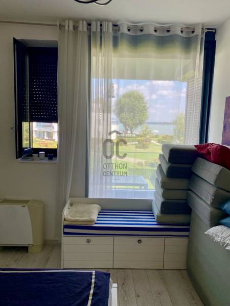 Eladásra kínálok egy közvetlen, saját használatú kertkapcsolattal rendelkező 77 nm-es nyaralót.Fektessen be egy exkluzív ingatlanba, amely Siófok egyik kedvelt részén, az Aranyparton található!Az ingatlan főbb jellemzői:* A tulajdoni lap szerinti besorolása: Nyaraló*Kertkapcsolatos terasz: A bejáratnál egy 15 nm-es terasz biztosítja a kertkapcsolatot. *Balatoni erkély: Egy 13 nm-es, örök panorámás terasz nyílik a Balatonra.*Parkoló: A lakáshoz közeli, kényelmes parkolóhely.Belső Terek:•Amerikai konyha: 12 nm-es, mosogatógéppel és étkezővel.•Nappali: 21 nm-es, padlótól plafonig érő üvegfallal, lenyűgöző panorámával.•Hálószobák: Kettő hálószoba, az egyik a Balatonra néző kilátással.•Fürdőszoba: Gyönyörű Zuhanykabinos, WC-vel.•Különálló WCMűszaki tartalom:* A nyaraló házközponti hűtéssel-fűtéssel lettek kialakítva. (a lakásban lévő termosztátokról szabályozható)* A fürdőszobában törölköző-szárítós csőradiátor került elhelyezésre. * A használati meleg víz előállítása elektromos üzemű bojlerrel történik.* Hangulatos Kandalló (A Kandalló kémény előre kialakítása lehetővé tette a nappali helyiség kandalló füstgázának elvezetését)* Belmagasság: Az egység belmagassága 3-méter, mely lehetővé teszi a nappali és hálószoba tereinek kompromisszumok nélküli élvezetét.* Nyílászárók: Hőhídmentes alumínium szerkezetű, két rétegű üvegezéssel.* Teraszkorlát: 8.8-as, biztonsági fóliával ellátott, edzett biztonsági üvegből.Közösségi szolgáltatások:* Biztonság: 0-24 órás portaszolgálat.* Kényelmi szolgáltatások: 22 méteres feszített víztükrű medence, két gyermekmedence, játszótér, gondozott kert, saját strand és stég.A közös költség tartalmazza a portaszolgálatot, közös helyiségek takarítását, kertész díját, medence karbantartást, felújítási alapot, szemétszállítást, víz-, hűtés-fűtés átalányt.Az ingatlan eladási ára tartalmazza a parkolóhelyet.A belső terek esztétikusak, világosak és kényelmesek. A lakás teljes felszereltséggel rendelkezik, így akár azonnal költözhető, vagy befektetők számára azonnal kiadható.Éljen a lehetőséggel! Engedje meg magának és családjának a teljes luxust!