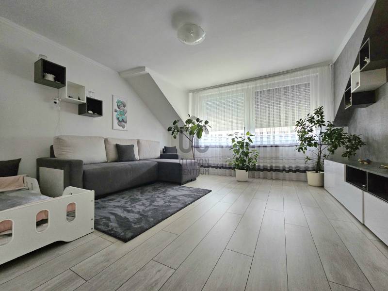 Debrecen Szabadságtelepének csendes, kertvárosi részén, a Vámospércsi útból nyíló, aszfaltozott utcában eladó egy háromszintes ikerház, amely ideális választás azoknak a családoknak, akik nyugodt környezetben, mégis jó infrastruktúrával szeretnének élni.Az ingatlan 450 m²-es telken helyezkedik el, nettó 132 m² lakótérrel, valamint egy 71 m²-es, jól kihasználható pinceszinttel.A házba belépve egy világos, tágas nappali–konyha–étkező tér fogad, amely a családi élet központja lehet.Innen nyílik egy 10 m²-es fedett terasz, ahol a reggeli kávé vagy az esti beszélgetések igazán kellemesek.A konyha minőségi beépített bútorokkal és gépekkel, gránit munkapulttal készült, az étkezőnél bőven van hely a közös étkezésekhez.A földszinten található:-Épített zuhanyzós fürdőszoba WC-vel-Ajtóval leválasztott, praktikus előszoba beépített tárolókkal-Padlófűtés, amely kellemes meleget biztosít a hidegebb napokonFelújítások – amik a mindennapokat teszik kényelmesebbé:-Korszerűsített fűtésrendszer, padlófűtéssel a földszinten és radiátoros fűtéssel a tetőtérben-Fürdőszobák és földszint minőségi burkolatainak cseréje-Laminált burkolatok cseréje a szobákbanA tetőtérben található:-Három külön nyíló, világos hálószoba , ahol minden családtagnak jut saját tér-A két szobából nyíló loggia csendes pihenést kínál-Sarokkádas fürdőszoba és külön WC pedig segíti a reggeli készülődéstSokoldalúan használható pinceszint:-Kétállásos garázs-Kazánház és kamra-Külön WC és zuhanyzó-Tökéletes tárolásra, hobbira vagy akár kisebb műhelynek is.Gondozott kert, biztonságos környezet:A füvesített, körbekerített kert automata öntözőrendszerrel ellátott, így könnyen karbantartható.Az automata kaputechnika és a térkövezett kerítés előtti parkoló a mindennapi kényelmet szolgálja.Elhelyezkedés, amit a család is szeretni fog:-Iskola, óvoda a közelben-Gyógyszertár, üzletek könnyen elérhetők-Lidl, Aldi, Penny néhány percre-Csendes, folyamatosan fejlődő városrészEz az ingatlan felújított, jól élhető családi otthon, ahol a tágas terek, a kert és a nyugodt környezet valódi életminőséget ad. Ha olyan otthont keres, ahová jó hazatérni, hívjon bizalommal, és tekintse meg személyesen!Az alaprajz tájékoztató jellegű.Az ingatlan \"Felező díjcsomagban\" lett megkötve, kérem az Otthon Centrum oldalán tájékozódjon a részletekről!Ez az ingatlan a \"Felező csomag\" megbízási portfólióhoz tartozik. Részletek az Otthon Centrum weboldalán.