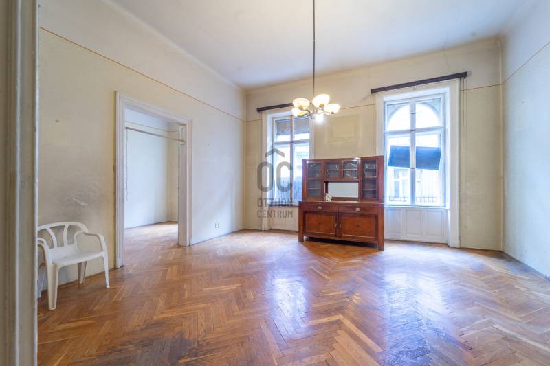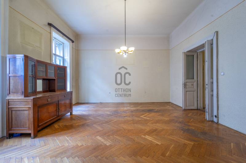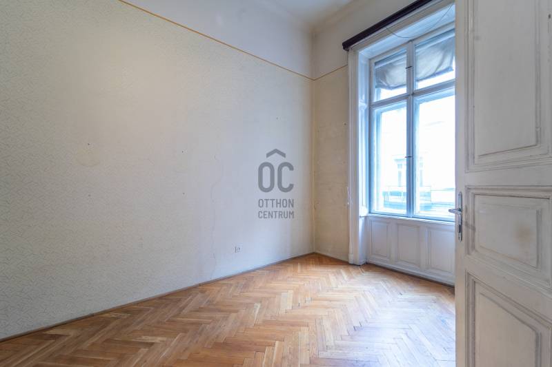 A VII. kerület egyik legismertebb részén, a Dohány utcában, a New York kávéház közvetlen közelében kínálunk megvételre egy 84 m²-es, 1. emeleti, teljes körű felújítást igénylő lakást.Ez az ingatlan kifejezetten jó fejlesztési / befektetési alap.A lakás fő erősségei:•két külön bejárat (előszoba + konyhai bejárat a folyosóról)•392 cm belmagasság – galériázható, loft jelleg kialakítható•funkcionálisan kettéosztható alaprajz•utcai nézetű, nagy méretű helyiségek•teljesen szabadon újragondolható belső elrendezés•minden műszaki elem felújítandó (ablakok, padló, fűtés, villany, konyha, fürdő)A konyhában található beugró korábban ajtóként funkcionált.Iroda / rendelő szempontból:•1. emeleti elhelyezkedés•két bejárat – ügyfél- és privát rész leválasztható•utcai, világos helyiségek•reprezentatív belvárosi környezet•iroda, rendelő, stúdió funkcióra is alkalmas térstruktúraTársasház:•jó állapotú homlokzat•felújítás alatt álló közös területek (függőfolyosók megerősítése, bejárati csarnok felújítása már megtörtént)•jó közös képviselet•lift nincsLokáció:•Dohány utca•New York kávéház ~100 méter•kiváló tömegközlekedés•folyamatos bérlői és irodai kereslet________________________________________Ez az ingatlan azoknak szól, akik meglátják a struktúrában és a lokációban rejlő potenciált.Megtekintés előzetes egyeztetés alapján.Ez az ingatlan a \"Felező csomag\" megbízási portfólióhoz tartozik. Részletek az Otthon Centrum weboldalán.