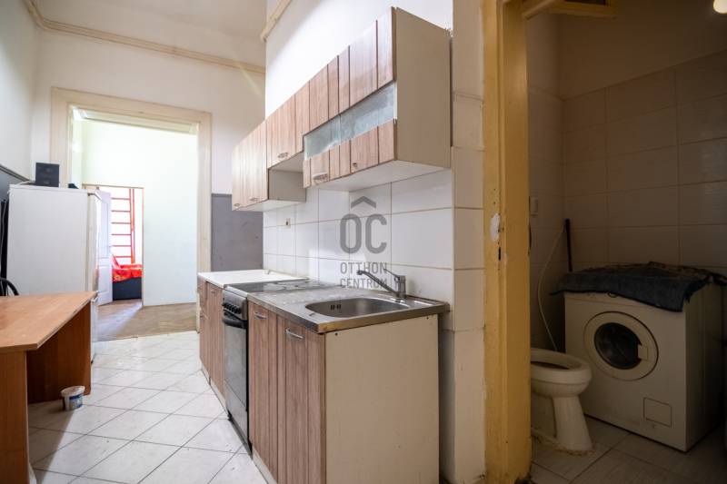 Kiváló közlekedés mellett kínálunk megvételre egy tágas, 119 m²-es lakást, amely az 1. emeleten helyezkedik el, 5 külön nyíló szobával és 3 fürdőszobával.A lakás utcai nézetű, így világos és napfényes, a nagy ablakoknak köszönhetően egész nap természetes fény járja át. A helyiségek elrendezése ideális nagyobb családnak vagy akár befektetési célra is (pl. rövid- vagy hosszútávú kiadás).Jelenleg 2 lakásra van osztva, egy kisebb apartman,mely 1 szoba és fürdő, konyhából áll.A másik lakrész pedig 4 szoba 2 fürdőszoba, 1 konyhából áll.Főbb jellemzők:Alapterület: 119 m²Emelet: 1.Szobák: 5 (külön nyíló)Fürdőszobák: 3Kilátás: utcaiazonnal költözhetőKiváló infrastruktúra és közlekedésA környéken minden megtalálható: boltok, éttermek, kávézók, iskola, óvoda, tömegközlekedési megállók.Ez az ingatlan a \"Hűség csomag\" megbízási portfólióhoz tartozik. Részletek az Otthon Centrum weboldalán.