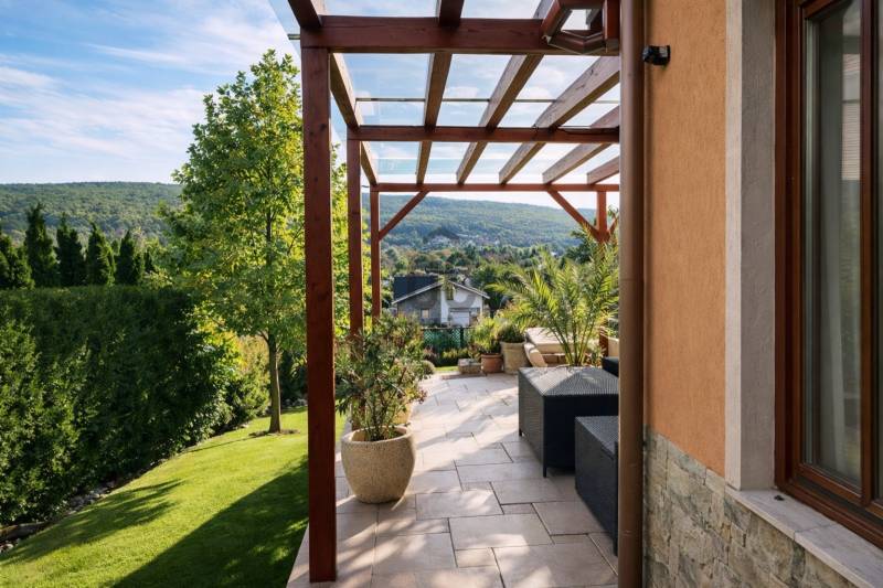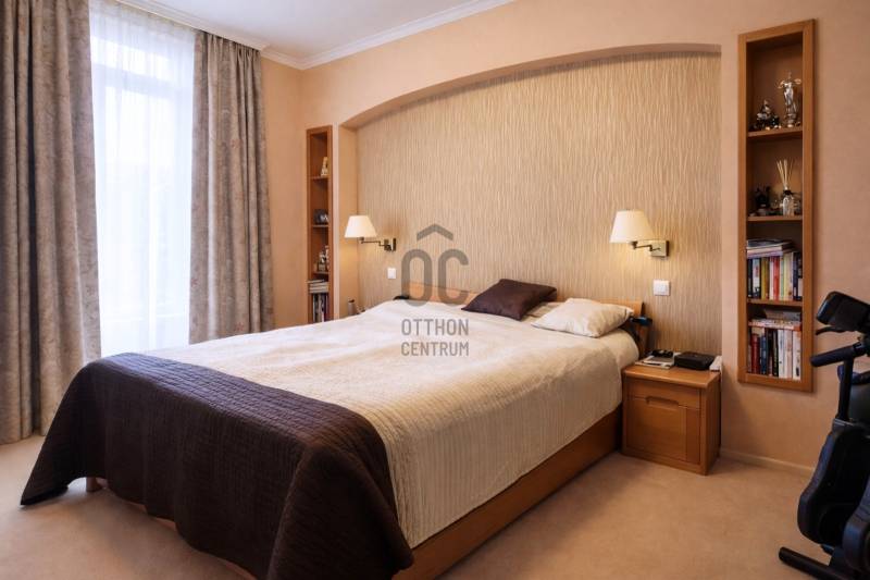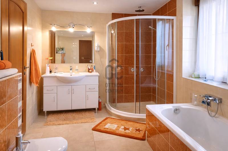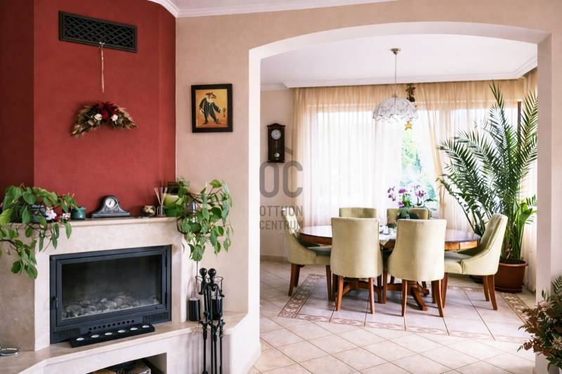 Pest vármegyében, Nagykovácsi egyik keresett, nyugodt lakóövezetében kínálunk megvételre egy 209 m² hasznos alapterületű, korszerű kialakítású családi házat, 987 m²-es, parkosított telken. Az ingatlan kiváló választás nagycsaládosok, többgenerációs együttélésben gondolkodók vagy otthoni munkavégzéshez tágas életteret igénylők számára.Ingatlan paraméterei:2 nappali, 5 külön nyíló hálószoba, 3 fürdőszoba, 32,2 m²-es, kertkapcsolatos terasz, 16 m²-es és 11,5 m²-es erkély, déli tájolás, tehermentes jogi státusz.Elrendezés és belső kialakítás:A ház átgondolt alaprajzi struktúrával rendelkezik. A két nappali elkülöníthető funkciókat tesz lehetővé: reprezentatív fogadótér, családi élettér, dolgozószoba vagy hobbihelyiség egyaránt kialakítható. Az amerikai konyhás nappali tágas, természetes fénnyel bőségesen ellátott, közvetlen kapcsolatban áll a terasszal és a kerttel. A hálószobák szeparáltan helyezkednek el, biztosítva az intimitást és a zavartalan pihenést. A három fürdőszoba kényelmes használatot garantál akár nagyobb létszámú család számára is.A déli fekvésnek köszönhetően a lakóterek egész nap világosak, energiahatékonysági szempontból is kedvező adottságúak.Műszaki tartalom: gáz cirkó fűtési rendszer, split klímaberendezés, jó műszaki és esztétikai állapot.Külső terek:A gondozott, intim kert ideális gyermekes családok számára, valamint szabadtéri pihenésre, kerti rendezvényekre. A terasz és a két erkély további használható életteret biztosít, panorámás kilátással a zöld környezetre.