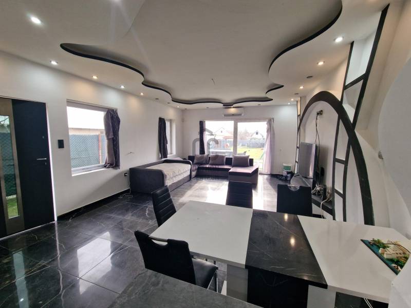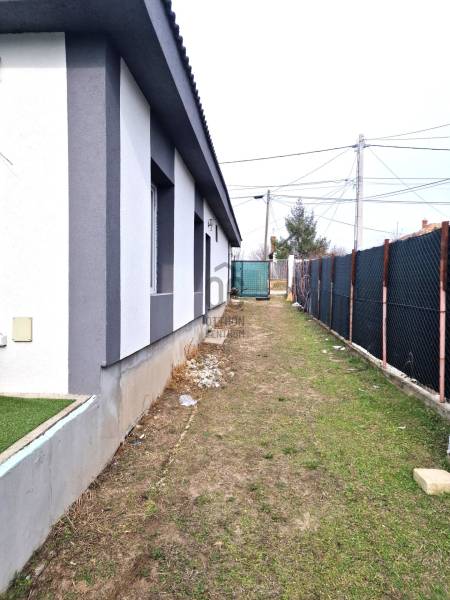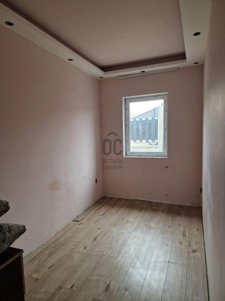 Eladó Gyálon egy nettó 66 m², bruttó 75m² felújított földszintes családi ház, 650 m²-es telken!Az ingatlan 2021-ben esett át jelentős átépítésen és korszerűsítésen, melynek részeként új tetőszerkezetet kapott, 10 cm-es szigeteléssel. Az épület bruttó alapterülete 66 m², melyhez egy 18 m²-es terasz csatlakozik.A ház első részén található két szoba korábban épült, a hátsó bővítés 30-as Porotherm téglából valósult meg, ami a térképvázlaton nem szerepel, ezért csak KP. vevő jelentkezését várjuk! A telek belterületi, összközműves, a gázcsonk a kertben található, így igény esetén könnyen csatlakoztatható.Helyiségek:• Szoba 1: 8m²• Szoba 2: 9m²• Nappali + étkező: 40 m²• Fürdő + WC: 4,4 m²Befejező munkálatok hiányoznak.Az ingatlan 1/1 tulajdonú, megegyezés szerint költözhető. A fűtést hűtő-fűtő klímaberendezés, a meleg vizet okos bojler biztosítja, mely a tetőtérben kapott helyet.Készpénzes érdeklődők keresését várjuk.Az ingatlan frekventált, mégis csendes, új építésű házakkal körülvett környéken található.Kiváló infrastruktúra: gyors kijutás az M0-ra, közel az Üllői út, tömegközlekedés és autós közlekedés szempontjából is ideális.Rugalmasan mutathatható, hívjon a hét bármelyik napján, akár hétvégén is!