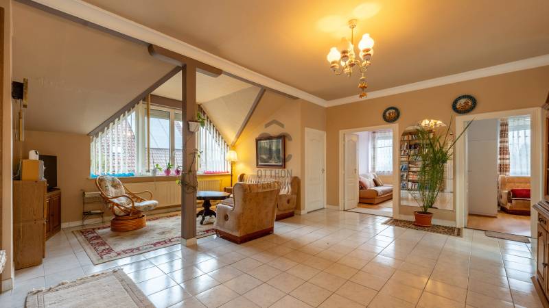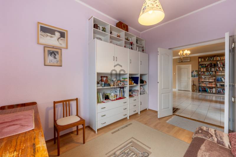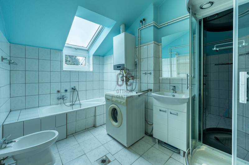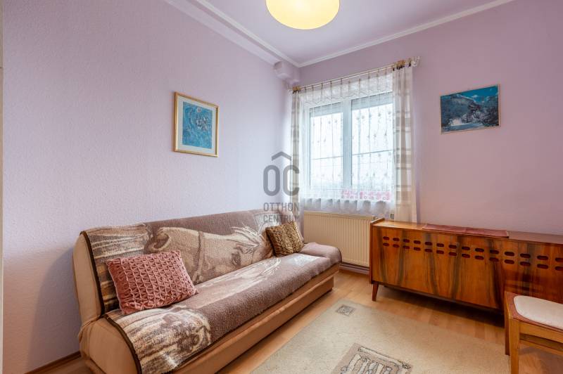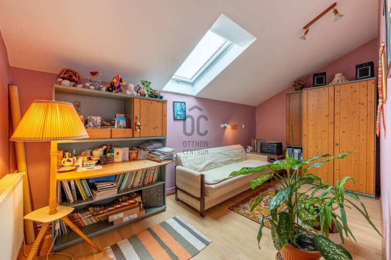 Szentendre Püspökmajor részén kínálunk megvételre egy 120 m²-es, első emeleti társasházi lakást, amely ideális választás családoknak vagy azoknak, akik nagyvonalú életteret keresnek kiváló elhelyezkedéssel.Az ingatlan 4 különnyíló szobával, egy 36,4 m²-es világos nappalival, valamint egy tágas konyha–étkezővel rendelkezik. A kényelmet egy tágas fürdőszoba, továbbá egy külön WC biztosítja, így a mindennapokban is praktikus megoldást nyújt.A lakás átlagos állapotú, így az új tulajdonos saját igényei szerint alakíthatja, korszerűsítheti, miközben azonnal költözhető állapotot kínál. A nappaliból elérhető terasz kiváló lehetőséget ad pihenésre, reggeli kávézásokra vagy esti kikapcsolódásra. Az ingatlan külön helyrajzi számon nyilvántartott, egy mindössze kétlakásos társasház része, amely alapító okirattal rendelkezik. A lakáshoz saját használatú kertrész tartozik, továbbá az ingatlanhoz kapcsolódik egy tároló is, amely közös tulajdonban áll.Az ingatlanhoz 2 db fedett garázs is tartozik, amely kényelmes és biztonságos parkolást biztosít egész évben – ez a környéken különösen nagy érték.A környezet csendes, rendezett, a közlekedés kiváló: vasút- és buszkapcsolat révén Budapest rövid időn belül elérhető, így az ingatlan ideális választás lehet akár ingázóknak is. Emellett boltok, iskola, óvoda és Szentendre belvárosa is könnyen megközelíthető.Egyedi igényekre szabott lakáshitelekkel állunk rendelkezésére.Bankfüggetlen Hitelcentrumunk az országban elérhető összes bank és hitelintézet ajánlatát versenyezteti az Ön számára díjmentesen.Munkatársaink nagy szakmai tapasztalattal, teljes körű CSOK PLUSZ és OTTHON START PROGRAM ügyintézéssel várják Önt előre egyeztetett időpontban akár a normál munkaidő után is.