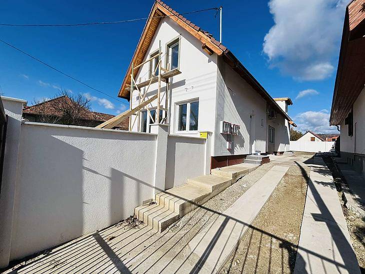 RégiFót rendezett, családias részén kínálunk megvételre egy 2026-ban épült, modern ikerházfelet, amely ideális választás mindazok számára, akik új otthont keresnek jó infrastruktúrával és kiváló megközelíthetőséggel.A nettó 94,5 nm-es lakótér praktikus elrendezésű: a földszinten amerikai konyhás nappali, egy szoba, fürdőszoba és előszoba található, míg a teljesen beépített tetőtérben közlekedő, három külön nyíló szoba és egy fürdőszoba került kialakításra. A déli fekvésnek köszönhetően a terek egész nap világosak.A nappaliból közvetlen kapcsolat nyílik a 6,5 nm-es teraszra és a leválasztott, saját használatú 20 nm-es kertrészre.Az ingatlan korszerű műszaki tartalommal rendelkezik:12 cm külső szigetelés, 30 cm födémszigetelés, 3 fázis, H tarifa, hőszivattyús hűtő-fűtő klíma és mindkét szinten padlófűtés biztosítja az energiatakarékos működést.A társasházzá minősített ingatlan külön helyrajzi számon szerepel, saját mérőórákkal rendelkezik, 1/1 tulajdonban van, a ház előtt pedig két saját kocsibeálló található.Elhelyezkedése kifejezetten kedvező: buszmegálló, üzletek és a mindennapi élethez szükséges szolgáltatások a közelben, Budapest pedig gyorsan megközelíthető autóval.Az ingatlan kizárólag készpénzes vevő részére elérhető.