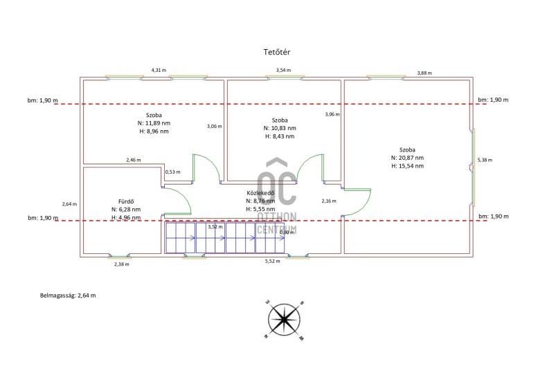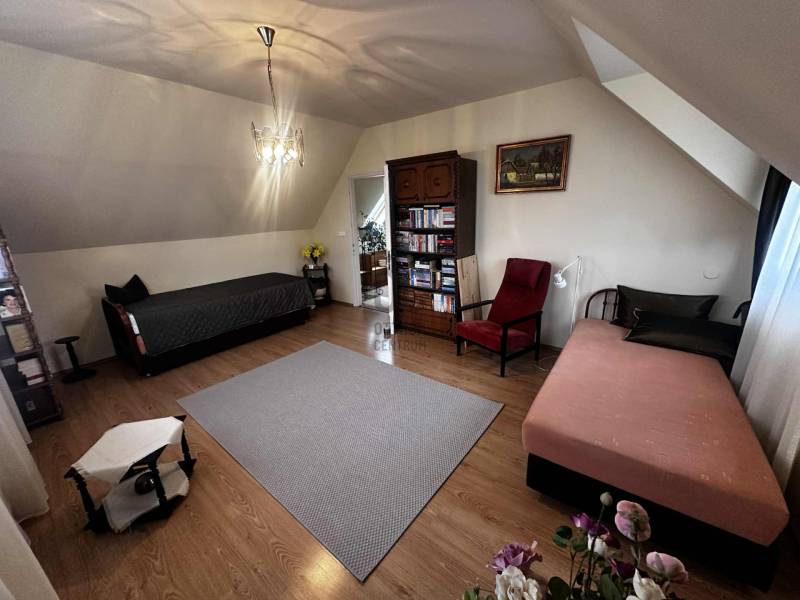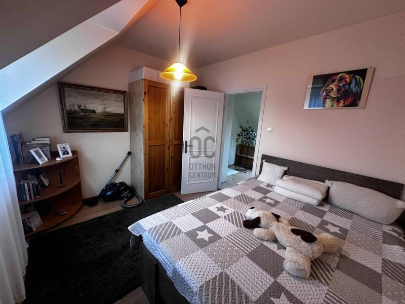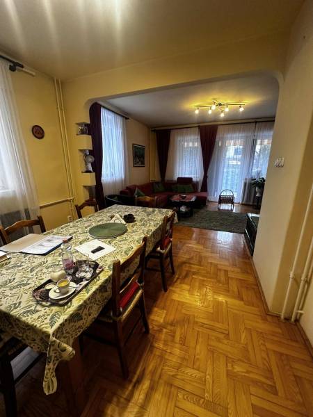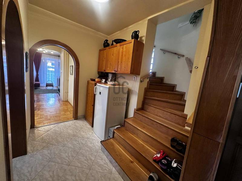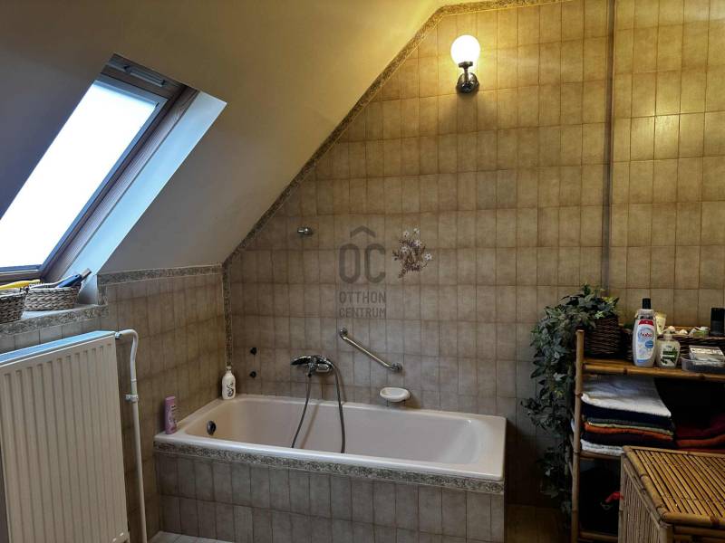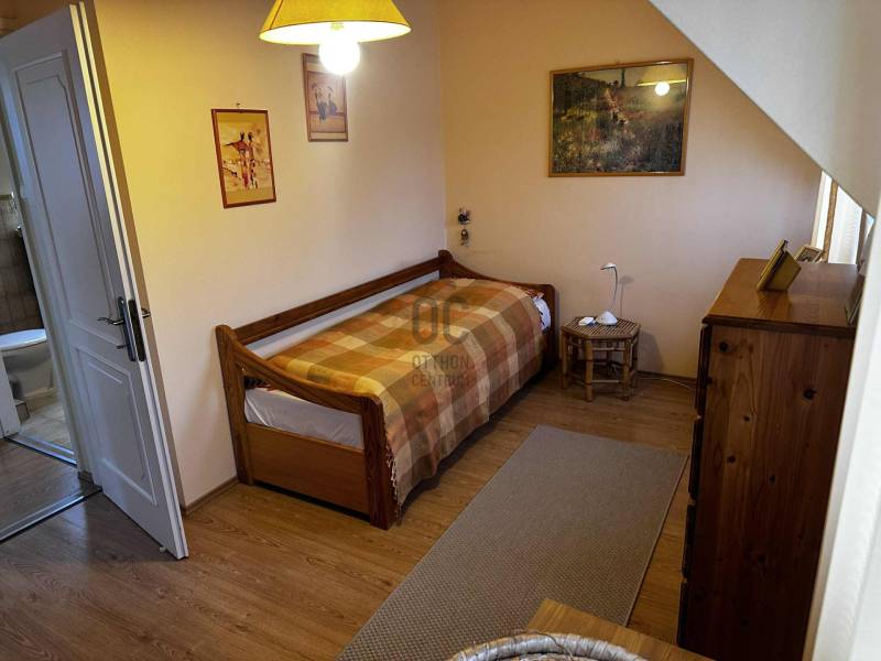 Budapest II/A kerület Pesthidegkút városrészben kínálunk egy nagyon jó alapadottságokkal rendelkező ikerházfelet.Az Üvegház utcai ingatlan, a Hidegkúti útról 8-10 perc sétatávolságra elérhető.-A téglából épült családi otthon 1989-ben épült-394 m2 telek tartozik hozzá-3 szintes (szuterén, félemelet, tetőtér)-A ház jól karbantartott, de felújítás, korszerűsítés nem történt az építés óta, így a jobb energetikai hatékonyság érdekében, teljes felújítás szükséges.A kapun belépve 4 lépcsőfokon jutunk be a házba. Az előszoba (6.88m2) és közlekedő (5.62m2) kényelmes méretű, a beépített szekrénybe cipők és a kabátok is jól elférnek. Innen balra léphetünk a konyhába, amely ablakos az utca felé és egy átadó pulttal az étkező felé is nyitott. A közlekedőből az étkező és nappali szobába léphetünk, amelynek éke egy szép, fatüzelésű cserépkályha. A nappaliból kiléphetünk a 21m2-es teraszra, innen pedig lesétálhatunk a kertbe. A földszinten továbbá egy wc és mosdó is helyet kapott és innen indul a világos lépcsőház is mint a szuterén, mint a tetőtér irányába.A tetőtérben a közlekedőből (5.55m2) 3 hálószoba (8.96m2, 8.43m2, 15.54m2) és egy kádas fürdőszoba (4,96m2) nyílik.A szuterén szint egyik legnagyobb előnye, hogy akár teljesen szeparálva, külön bejárattal rendelkezik!!! így akár két generáció is tud együtt élni a házban. (korábban volt is így használva) De alkalmas lehet akár otthoni irodának, műhelynek, hobby, vagy torna helyiségnek is. Ezen a szinten található a kazánház is. A ház melegét a cserépkályhán kívül, a 2018-ban kicserélt Bosch gázkazán biztosítja. A lakószobán túl (22.4 m2) egy zuhanyzós fürdőszoba (3,51m2) és 3 további helyiség is található ezen a szinten (5.2m2, 4,38m2, 1m2) melyből a legnagyobbat korábban teljesértékű konyhaként is használtak, ma csak tárolóként funkcionálnak.Közvetlenül a ház mellett, egy 16.6m2-es zárt garázs, előtte pedig egy fedett gépkocsibeálló is kialakításra került. A kertben egy betonalap is megtalálható, ami korábban egy medencének adott helyet.Nagyobb családoknak kiváló lehetőség lehet ez a ház. Felújítás után, egy igazán jól használható családi otthon varázsolható belőle.(Fontos, hogy az ingatlan jogilag lakóházként van nyilvántartva, de ikerházas kialakítása okán, az otthon start 3%-os hitelt nem lehet rá igényelni, mert a falai összeérnek.)Várom érdeklődését