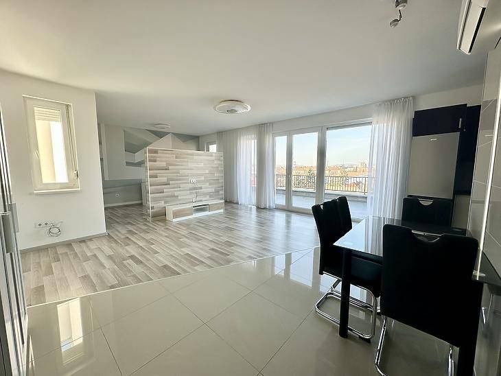 Vác Alsóvárosának egyik kedvelt, modern részén eladó egy 2021-ben épült, 4. emeleti, 67 nm-es, téglaépítésű lakás, amelyhez egy lenyűgöző, 22 nm-es, egész városra panorámás erkély tartozik. A lakás azonnal költözhető.Az ingatlan elrendezése rendkívül praktikus: világos, amerikai konyhás nappali, amely közvetlen kapcsolatban áll a tágas erkéllyel, egy szoba, fürdőszoba, külön WC, valamint egy gardróbként vagy mosókonyhaként is használható helyiség biztosítja a kényelmet. A gépesített konyha modern és esztétikus kialakítású, így az új tulajdonos számára azonnal használatba vehető.A lakás fűtéséről házközponti rendszer gondoskodik padlófűtéses hőleadással, amely kellemes, egyenletes hőérzetet biztosít, emellett egy hűtő-fűtő klíma is rendelkezésre áll a maximális komfort érdekében. A tripla üvegű, thermo műanyag nyílászárók, valamint a 10 cm-es külső szigetelés energiatakarékos fenntartást tesznek lehetővé.A rendezett, kulturált lépcsőházban lift található, továbbá igény esetén a teremgarázsban parkolóhely is vásárolható a lakáshoz.Infrastruktúrája kiváló: 5 perces sétán belül buszmegálló és bevásárlási lehetőségek, a vasútállomás pedig mindössze 15 perc gyalogosan, így a bejárás akár Budapest irányába is kényelmesen megoldható.Kérdésével, illetve megtekintése szándékával keresse irodánkat, amennyiben hitelre lenne szüksége, profi hitelközvetítő kollegáink díjmentesen állnak rendelkezésükre.Amennyiben eladásra lenne szüksége új ingatlanjának megvásárlásához, irodánk ingyenes értékbecslést vállal egész Vác területén.
