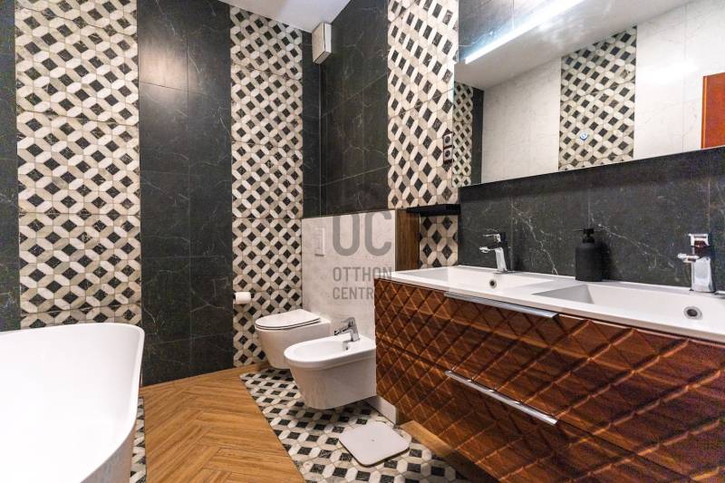 Fedezd fel álmaid otthonát Budapest XIV. kerületének csendes, de mégis pezsgő részén Zuglóban!Ez a felújított, kiváló állapotú, sorház jellegű, két szintes családi ház nem csupán egy ingatlan, hanem egy életstílus, amely ideális azok részére, akik értékelik a kényelmet és a természet közelségét.Nappali+ 5 tágas hálószobával rendelkezik, így bőséges teret biztosít a család számára, vagy akár baráti összejövetelekhez is. Két fürdőszobája garantálja, hogy reggelente senkinek sem kell várakoznia és emellett még vendég mosdó is megtalálható.A házhoz tartozik egy 403 négyzetméteres telek, amely rendezett kerttel rendelkezik. A füvesített kertben kiépített öntözőrendszer, 3x5 méteres hőszivattyúval fűthető medence, fedett sütögető rész és egy kis faház tárolónak is megtalálható.A 35 nm-es terasz tökéletes helyszín családi grillezésekhez vagy csak a napozáshoz.A prémium kivitelezés és a modern dizájn megjelenik a ház minden részletében. A kandallós nappali a téli estéken biztosítja a meghitt hangulatot. Az ingatlan fűtése gázkazán (viessmann) történik, radiátoros hőleadókkal, valamint padlófűtés is ki lett építve.Hűtése klímával, így a legforróbb nyári napokon is kellemes hőmérsékletet biztosít.A riasztó és kamera rendszer és a biztonságos környék nyugalmat ad a mindennapokhoz.Két autó számára udvari beálló áll rendelkezésre elektromos kapuval, biciklitárolóval.Fenntartása nagyon kedvező, köszönhető ez az 50 cm-es téglafalazatnak és a modern nyílászáróknak is.Az ingatlan tehermentes, így gyorsan birtokba vehető kifizetést követően.A környék kiemelkedő közlekedési lehetőségekkel rendelkezik: a kitűnő közlekedésnek köszönhetően gyorsan elérheted a belvárost. A csendes utcák és a barátságos szomszédság ideális környezetet biztosítanak az ideköltözők számára, akik szeretnék élvezni a városi élet előnyeit, miközben a természet lágy ölén pihenhetnek. Ne habozz, ha egy exkluzív, modern és családbarát otthont keresel, ami minden igényt kielégít!Várom megkeresésedet hétköznap és hétvégén is!Ez az ingatlan a \"Felező csomag\" megbízási portfólióhoz tartozik. Részletek az Otthon Centrum weboldalán.