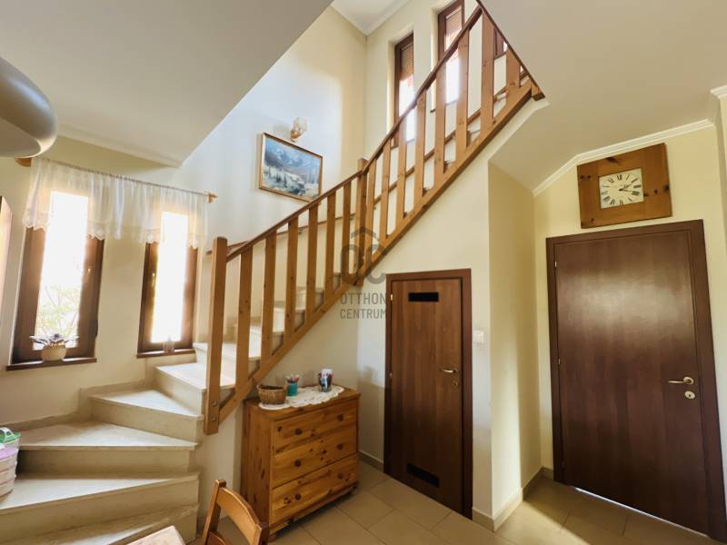 Eladó családi ház Szántód szívében – balatoni részpanorámával, SAJÁT TULAJDONHÁNYADDAL A PRIVÁT STRANDONSzántód gyönyörű, mediterrán hangulatú, rendezett házas övezetében kínálunk megvételre egy 2011-ben épült, szabadon álló, impozáns, lakóház besorolású családi házat, amely minden részletében az élhetőséget és a kényelmet szolgálja.FŐBB ADATOK:*Lakótér: 130 nm*Terasz: 47+ 11 nm *Garázs: 34 nm (elektromos kapuval, előszobából közvetlen megközelítéssel)*Telek: 700 nm, teljesen körbekerített, fejlett örökzöld növényzettel*Kilátás: Balatoni részpanoráma a kertből és az emeleti szülői hálóból*Építés éve: 2011*Szerkezet: tégla falazat, 2 szintAz udvarba elektromos úszókapun keresztül juthatunk be, ahol térkövezett autóbeálló biztosít további parkolási lehetőséget.ELOSZTÁSFöldszint:*Fedett előterasz a bejáratnál*Előszoba vendég WC-vel*Élőszobából megközelíthető garázs*Tágas, napfényes nappali–étkező–konyha egy légtérben*Kamra*Hálószoba*Fürdőszoba WC-vel*Kapcsolat a nagyméretű teraszhozEMELETKözlekedő:*Fürdőszoba*Külön WC*3 hálószoba, melyek közül egyből balatoni részpanoráma tárul elénkA praktikus elrendezés, ideális nagyobb család számára is, minden helyiség jól kihasználható.MŰSZAKI TARTALOM & EXTRÁK:*Vételár tartalmazza a privát strand tulajdonjogát*Engedélyeztetett tervrajzokkal rendelkezik kerti medencéhez*Gázkazánról működő fűtés*12 cm-es homlokzati szigeteléssel ellátott*Padlófűtés a közösségi terekben*Radiátor a hálószobákban*Melegvíz: gázkazán + 120 literes puffertartály*Használaton kívüli kémény – vegyes tüzelésű kazán beépíthető*Műanyag nyílászárók fa mintázattal*Redőny és szúnyogháló*Riasztórendszer*Locsolóvíz külön mérőórával*Bútorzat megegyezés szerintKÖRNYEZET&ÉLETÉRZÉSAz ingatlan kertvárosias, mégis kiváló infrastruktúrával rendelkező környezetben található, közel a mindennapi ellátó egységekhez. RÉV pár száz méterre.Reggelét akár egy kávéval indíthatja a teraszon, majd pár perc alatt a tihanyi Visszhang domb tetejéről élvezheti a balatoni panorámát.Kinek ajánljuk?Akik egy átgondolt, praktikus és élhető otthont keresnek.Családoknak, akik értékelik a tágas tereket és a minőségi kivitelezést.Azoknak, akik a Balaton közelségét szeretnék élvezni, mégis nyugodt lakókörnyezetben.Ez a ház nem csupán ingatlan, hanem életstílus a Balaton partján.Amennyiben felkeltette érdeklődését, keressen bizalommal!Az adatok kizárólag a megbízóink által rendelkezésünkre bocsátott információkon alapulnak.Fentiekre tekintettel, az adatok teljességéért, helyességéért és aktualitásáért nem vállalunk felelősséget.Az árváltozás, adatmódosítás és közbeni értékesítés jogát fenntartjuk, mindezekért jogi felelősséget nem áll módunkban vállalni.