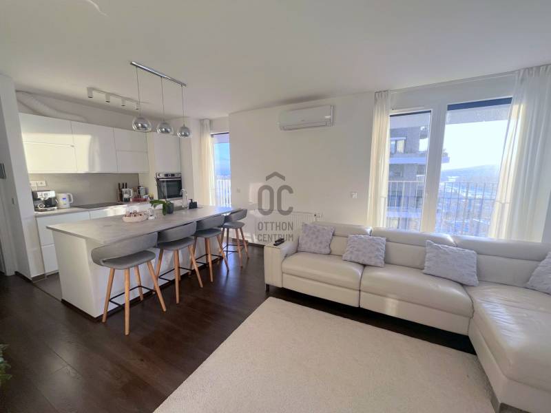 Eladóvá vált a méltán híres és kedvelt luxus Metrodom Panoráma lakóparkban egy 4 szobás újszerű állapotú lakás Dunai panorámás terasszal!Kiváló elosztás, magas minőség és budai-Dunai panoráma jellemzi ezt a remek 86nm + 36nm terasszal rendelkező 13. emeleti lakást.Hogy miért pont ezt válaszd?+ Több díjat nyert, 2020-ban átadott társasház, amit luxus kivitelben építettek meg és rengeteg extrával felszereltek. 2+2 db személy és teherlift, porta szolgálat, közösségi szobák és parkos környezet fogadja a lakókat.+ A fűtés házközponti egyedi mérővel lakásonként, de a kiváló szigetelésnek köszönhetően télen is csak nagyon minimális fűtésre van szükség (havonta max. 5-7000.- FT). Az energiatakarékos LED lámpáknak és a prémium háztartási gépeknek köszönhetően az áram számla is elenyésző. A közös költségben benne van a 0-24-es portaszolgálat, az épület és garázstakarítás, a függőkertek és a park gondozása, illetve a lakópark általános rendben tartása is.+ Rendkívül jó a lokáció, mivel a 4. és 13. kerület határán található és 10 perc alatt elérhető a belváros. A lakóparkhoz tartozik egy pihenőparkos modern játszótér a gyermekesek örömére.+ Bevásárlási lehetőségek, éttermek, fagyizó, vegyesbolt, gyógyszertár, pékség, kávézó és még számtalan hely ami pár perc sétára elérhető a háztól.+ A tömeg közlekedés is kiváló, mivel Újpest városkapu metró megálló 6 perc sétára található, továbbá számos busz járat a háztól 300 méterre található (104,104A,147,196,204, és éjszakai 950,950A buszok).+ A lakás 3 jó méretű hálószobával, 2 fürdőszobával és még egy vendég mosdóval is rendelkezik.+ A tágas amerikai konyhás nappali rendkívül világos és mint minden szoba, ez is terasz kapcsolatos.+ A kilátás a Duna partra és a budai hegyeire, illetve Szentendre - Vác - Gödöllői dombság irányában teljesen zavartalan és lehengerlő látványt nyújt.+ Remek délnyugati fekvésű, így akár napkeltéről akár naplementéről legyen szó, bármelyik megcsodálhatod minden nap.+ Teljesen újszerű állapotban van, felújítást nem igényel. + A kényelmet fokozza az egész lakásban kialakított okos otthon rendszer, ami világítástól kezdve, a fűtésen át az elektromos redőnyig mindent kezel. Természetesen minden termék és energia hatékony kivitelezésű.+ A tulajdonos lehetőség szerint az ingatlannal együtt kívánja értékesíteni a hozzá a jelenleg használt mélygarázs beállót melynek külön ára 8M Ft.+ Az ingatlan tehermentes, 1/1-es tulajdonú társasházi lakás, hitelre is megvehető. A birtokba adás rugalmas, de az eladónak kedvező ajánlat lenne a visszabérlés lehetősége is, mivel egy másik jelenleg is épülő projekt lakásba költözne.Ha nyugodt környékre vágysz luxus és kiemelt környezetben egy olyan egyedi és remek állapotú lakásban, amihez egy egyedi nagysági terasz is tartozik gyönyörű kilátással, akkor gyere el és szeress bele te is!