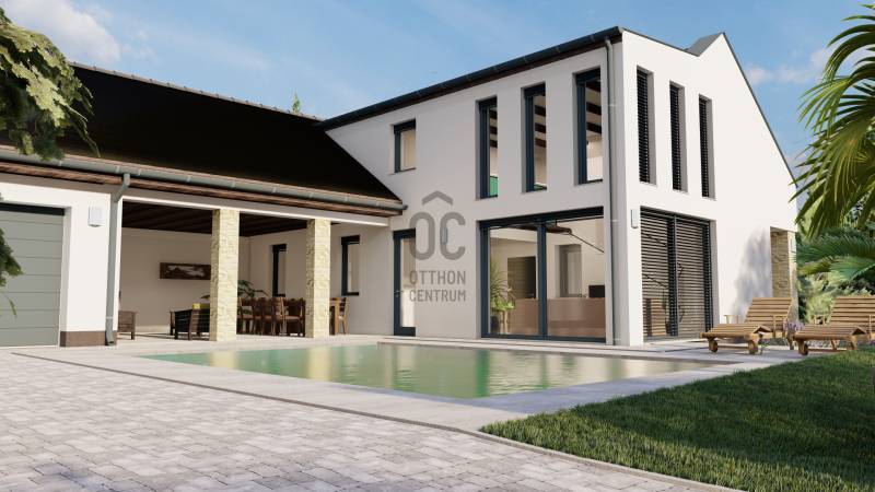 Ez az ingatlan nem mindenkinek szól. Csak annak, aki pontosan tudja, mit akar!Van egy pont az életben, amikor már nem akarod hallgatni a forgalom zaját. Nem vágysz már liftre, szomszédra, parkolóhely-keresésre. Inkább a saját kerted illatát szeretnéd érezni. A csendet. A tér szabadságát. Egy édeni kis faluban, ahol a csend maga a luxus, ahol a természet közelsége nem lemondás, hanem kiváltság – itt épül meg ez a prémium villa, amely nem csupán egy ingatlan, hanem egy életminőségi szintlépés. Egy választás azoknak, akik tudják: a valódi luxus nem hivalkodik – csak jelen van. Finoman. Magabiztosan.Ez nem ház. Ez egy életérzés. Egy korty szabadság nap mint nap. 30 percre Budapesttől, de világokra a zajtól. Itt a csillagokat is látni. Saját medence, saját kert – minden a tiéd. Aki ide jön, nem véletlenül talál rá. A ház, a kert, a látvány és a kivitelezés beszél helyetted. Ez nem egy újabb agglomerációs ikerház. Ez a hely különleges. Ahogy te is. „Új életmód: minden nap olyan, mintha nyaralnál.”Belső terek, ahol az anyagok nem csak szépek – hanem mesélnek. A Porcelanosa Orobico Dark kőburkolatú nappali hangsúlyfala olyan, mint egy festmény: selymesen fénylő, drámai textúrával. A MIRAGE Tavernit padlólapok természetes meleg tónusú, olasz prémium greslapok – rusztikus eleganciájuk átfogja az egész házat.A mennyezetet Shou Sugi Ban technikával kezelt lakkozott fenyő rönkök tartják, köztük rejtett LED világítással. Nem dizájnelem – karakter.Az üveglépcső feketefém rögzítéssel és süllyesztett LED-spottal minden este új fényjátékot játszik. Az üveg padlójú galérián állva úgy érezheti lebeg a nappali felett.A padlószőnyeg a hálókban szállodai minőségű – csak az tudja, mit jelent ez, aki mezítláb jár benne.A konyha egyedi gyártású, szigetes 18mm vtg Egger H1330 ST10 Santa Fe Laminált Tölgy Vintage frontlapokkal, Slim Line kvarc kompozit 12mm vtg. Egger Kompakt, Pietra Grigia Fekete munkalappal.Dupla Marmy Bergamo mosdók, VOVO okos-WC – nem extra, hanem alap.Antracit színű alumínium nyílászárók, 3 rétegű üvegezéssel, motoros zsalúziával és szúnyoghálóval – mert a csendnek ára van.Energetikai függetlenség – napelem + energiatárolás. Smart vezérlés: mikor fűt, mikor tárol, mikor táplál vissza „Ez az otthon nem fogyaszt – gondoskodik magáról.”Mennyezeti hűtés-fűtés hőszivattyúval, légtechnikai rendszerrel – láthatatlan minden, csak komfortot lehet érezni.Frisslevegő-szabályozás magasabb szinten. Szenzor vezérelt légcsere CO₂, VOC, pára alapján automatikus bypass nyitás hűvös éjszakákon (passzív free cooling), zónás szellőztetés, ha a lakók külön élettérben tartózkodnak.Smart Home vezérlés – minden ott van, ahol kell, és pontosan akkor, amikor kell.„A hőmérséklet nem csak egy szám – itt a komfortot az érzékelés vezérli.”Kert, ami estére életre kel.Tavernit burkolatok a medence körül – csúszásmentes, természetes hatású felület.Saját, hőszivattyús fűtésű medence – nemcsak látvány, hanem élmény.Kettős zónás öntözőrendszer, automata tápadagolással – a kert önmagát gondozza.Fel-le sugárzó LED homlokzatfények – este a ház új arcát mutatja.A magas, zárt kerítés teljes intimitást biztosít – mégis nyitott a térre, a fényre, a levegőre. Itt egyszerre élhető meg a társasági élet öröme és a magányos nyugalom méltósága.Ez nem lakás. Ez státusz. Ez önazonosság. - Nem kérdés, hogy megéri-e. Csak az, hogy Ön lesz-e az, aki megengedi magának.