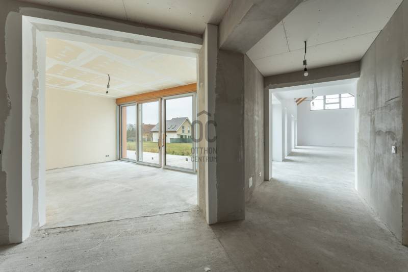 Igazi különlegesség: luxuskivitelű új, önálló épület a Velencei-hegység lábánál.„Magunknak építettük”Eladó Sukorón egy grandiózus méretű és megjelenésű önálló ház, mely családi fészeknek vagy üzleti célú képviseletnek, bemutatóteremnek is ideális. Az építkezés most ért el a legszebb részéhez: a burkolatok és a beépített bútorok még hátra vannak, és a tervek szerint innentől az új tulajdonos folytatja. Nyertünk Önnek két évet. És mindezt korszerű, energiahatékony megoldásokkal, továbbfejlesztési lehetőségekkel, hogy a modern állapot évtizedekig fennállhasson.Válassza meg Ön az épület funkcióját a saját céljai szerint, hogy álmait megvalósíthassa:- rendezvényhelyszín- bemutatóterem, cégképviselet- panzió, magánóvoda vagy képzési központ- művészeti alkotóházA lokáció jellemzői:-csendes, családi házas környék-jó közlekedés: autópálya felhajtó 3 ill. 5 km-szabadidős- és kulturális programok a térségben-kirándulóhelyek, sportlehetőségek a kapun kilépveTérbeosztás a földszinten, összesen 260 nm:- nappali – konyha – étkező 83 nm (open space)- master bedroom és fürdőszoba 34 + 13 nm- lakószoba 22 nm- családi fürdőszoba előkészítés 13 nm- télikert 20 nm- háztartási helyiség 8 nm- vendég fürdőszoba pisoárral 6 nm- előszoba, közlekedők össz. 36 nm- gépészet, raktár 17 nm- lépcsőtér 8 nmAz emeleten, összesen 104:- szoba 1- szoba 2- fürdőszoba előkészítés- közlekedő és gépészet- szabadon alakítható, nyitott tér (open space)A ház jellemzői számokban:- földszinti lakótér (első ütem) nettó 260 nm – használatbavételi engedéllyel rendelkezik (2026. október 16.)- az emeleti / tetőtéri (második ütem) 104 nm- összesen 364 nm- telekterület: 2765 nm- beépíthetőség: max. 30% (jelenleg 11,89%)- maximális építménymagasság: 4,50 m (a jelenlegi épület 4,49 m magas)- minimális zöldfelület: 40%, jelenlegi: 78,03%- saroktelek, 2 utca felőli megközelítésMűszaki jellemzők:- Porotherm 38 N+F tégla falazat- belső válaszfalak: vázkerámia falazóelem- hőszivattyús fűtés és hűtés- padlófűtés és mennyezethűtés mindkét szinten- hőszigetelő, hőhídmentes, 3 rétegű üvegezésű műanyag külső nyílászárók kívül világos bronz, belül tölgy fóliával ellátva- zsaluzia- külső faburkolat: Thermowood fenyő C65 Triple-Bever Profilból, 28 mm vastagságban, kiszellőztetést engedő párnafára szerelve, rovarhálóval lezárva, felületkezelése Remmers HK-Lasur 3in1 oldószerbázis favédő lazúrral- nyeregtető 40°-os dőlésszöggel, a héjazat Tondach Inspira sötétszürke, egyenesvágású cserépfedés- az íves és az alacsony hajlásszögű tetőrészeken Prefa korcolt alumínium lemezfedés Prefa 19 grafitszürke színben Dörken Delta Alpina alátétszigeteléssel- hőszigetelés a külső téglafalakon 16 cm EPS 80 homlokzati hőszigetelés, a lábazaton 16 cm XPS 30 cm magasságig felvezetve- hőszigetelés a padló szerkezetben (a földszinten) 20 cm (5+15 cm) EPS 100Ingatlan eladásban vagy a finanszírozás megtervezésében is készséggel állunk rendelkezésére.luxuskivitel, duplex, open space, energiahatékony, zsaluzia, egyediEz az ingatlan a \"Felező csomag\" megbízási portfólióhoz tartozik. Részletek az Otthon Centrum weboldalán.