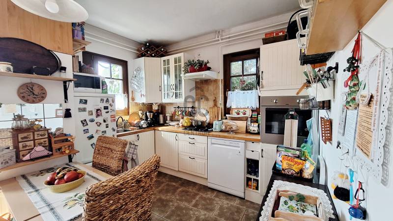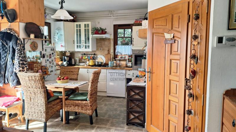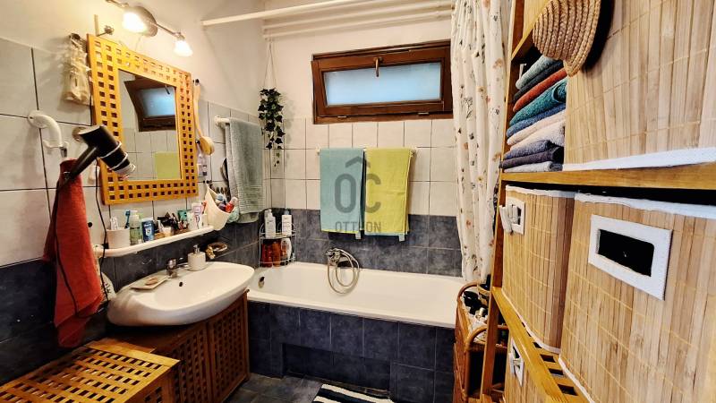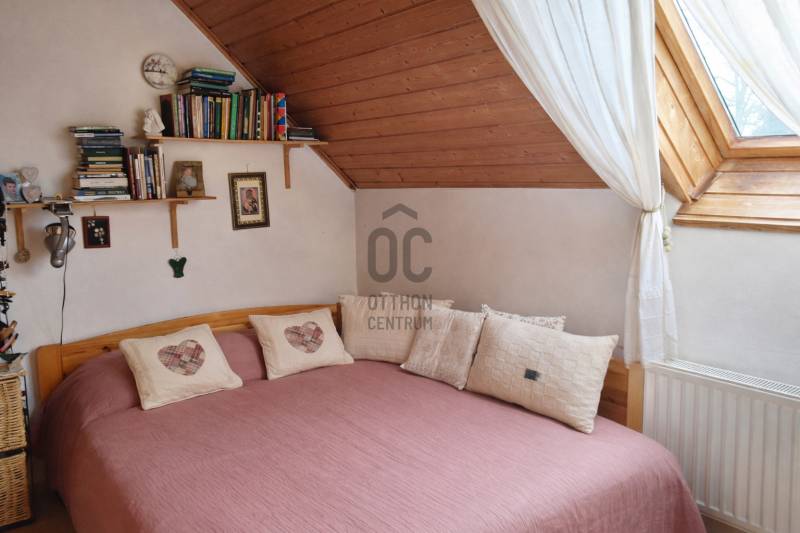 Eladásra kínáljuk gondosan karbantartott, kétszintes, sorház jellegű családi házat Budakeszi egyik legszebb és legkeresettebb részén, Virágvölgy csendes utcájában, a 12. kerület határán, közvetlenül az erdő szomszédságában.Az ingatlan a város északkeleti határán, a hajdani villa-üdülő övezetben, kiemelt presztízsű környezetben, a János-hegy közvetlen közelében helyezkedik el – ideális választás azok számára, akik a természet közelségét és a városi elérhetőséget egyaránt fontosnak tartják.Főbb paraméterekLakóterület: 95 m²Elrendezés: nappali + 3 külön nyíló szobaÉpület: 2 szintes, sorház jellegű (nincs közös fala a szomszéd ingatlannal)Földszint:előszobavilágos nappali valódi fatüzelésű kandallóvalkonyha - étkezőkádas fürdőszoba - wcteraszTetőtér:2 hálószoba (egyik hűtő-fűtő klímával)félszoba+ padlás tárolásraMűszaki és állapotAz ingatlan néhány éve belső felújításon esett átEgyedi fa nyílászárók, 3 kamrás üvegezésselBiztonsági zárral ellátott bejárati ajtóTetőtéri ablakok működőképesek, esztétikai felújítást igényelnekTisztasági festés után beköltözhetőKert és telekIntim, körbe kerített saját kert, ideális pihenésreOsztatlan közös tulajdonú telek, ügyvédi megosztássalKözművek – fontos információA vízvezeték-rendszer 2025 nyarán részben szétválasztásra kerültA külön csövek már lefektetésre kerültek, bekötésük és az önálló vízórák telepítése szükséges a teljes leváláshozJelenleg egy új közös gerincen történik az ellátásElhelyezkedés és közlekedésRendezett, aszfaltozott utcában, a városközponthoz közel.Parkolás a telken belül. Tömegközlekedés: Budapest–Budakeszi határán, kiváló elérhetőség:22, 22A, 222, 188, 188E és távolsági buszok 6-7 perc sétaSzéll Kálmán tér kb. 20 perc alatt elérhetőBevásárlás, gyógyszertár, orvos, éttermek ~5 perc sétára