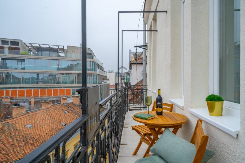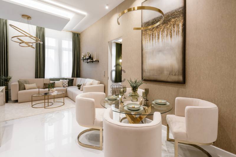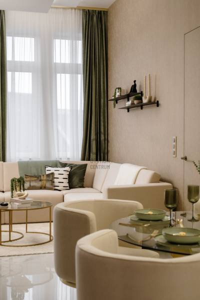 Történelmi falak között rejtőző modern műalkotás. Üdv itthon!RÖVID ÖSSZEFOGLALÓBudapest belvárosának V. kerületében, az 1910-es években épült, gyönyörűen felújított társasház 4. emeleti 95 m²-es, rendkívül praktikus alaprajzzal, prémium minőségben felújított lakása. Magazinba illő amerikai konyhás nappali + két en suite háló, erkély, kilátással a Szomory Dezső térre. DK-i tájolás, klimatizált, padlófűtés a legmagasabb komfort érzetért. Ne maradjon le a belváros egyik legjobb vételéről!LOKÁCIÓ – belvárosA Sütő utca Budapest belvárosának egyik legelőkelőbb és legkeresettebb része. Mindössze pár lépésre található a Deák Ferenc tér, a Bazilika és az Erzsébet tér, amely a város kulturális és gasztronómiai központja. A Városháza parkban rendszeresen piac működik, a Duna-part közelsége tökéletes lehetőséget nyújt esti sétákra vagy szabadtéri programokra. 5 perces séta távolságra található a közkedvelt Vörösmarty tér, Váci utca és a Duna korzó. Ez Budapest egyik legismertebb köztere, és nemcsak a kulturális események színtere, hanem híres a Vörösmarty szoborról és a történelmi Gerbeaud cukrászdáról is, valamint különlegessége, hogy az épületek között található modern üzletek és a hagyományos hangulatú kávéházak keverednek, egyedülálló atmoszférát adva az ide látogatóknak.Közlekedési lehetőségekMetrók: M1, M2, M3 találkozása a Deák Ferenc térenVillamos: 47-es, 49-esAutóval: Fizetős parkolási lehetőség az utcákban vagy bérléssel a közeli parkolóházakban.SÜTŐ UTCA 2 – Egy épület, amely nemcsak építészeti értékei, hanem kulturális öröksége miatt is figyelemre méltóFellner Sándor, a Sütő utca 2. szám alatti lakóház tervezője, egy kiemelkedő magyar építész volt, aki a 19. és 20. század fordulóján tevékenykedett. Munkássága szorosan összefonódott a korabeli bécsi építészeti irányzatokkal, különösen a neobarokk és szecessziós stílusokkal, és ezen stílusjegyeket alkalmazta a budapesti házak tervezésében is.A Sütő utcai épület az egyik remekműve, mely a városépítészet történetének jelentős darabja. Az épület homlokzata díszes ablakkeretekkel, kovácsoltvas erkélyekkel és gazdag ornamentikával büszkélkedhet, melyek a századfordulós építkezési szokásokat és az akkori építészeti trendeket tükrözik. A ház alaprajzi elrendezése is figyelemre méltó, és az építész igyekezett maximálisan kihasználni a belső teret, miközben az eleganciát és az egyediséget is megőrizte.Itt élt és alkotott Szomory Dezső, a híres magyar író, aki több művét is ebben az épületben írta, például a \"Párizsi regény\" -t. A tetőtéri lakás, ahol alkotott, máig emléket állít a művész életének, izgalmas kulturális kapcsolatokat és történelmi jelentőséget adva a háznak. Az épület falain belül tehát nemcsak a múlt, hanem a művészet és irodalom is jelen van.\"Sütő utca\" - névadás egy régi helyi pékséghez kapcsolódik, amely a környék egyik fontos helyszíne volt.Ezek az apró, de figyelemre méltó részletek különleges karaktert adnak a háznak, és azok számára, akik magas igényekkel keresnek egy történelmi értéket képviselő otthont, igazán vonzóvá teszik.A SMARAGDA belső teret a kifinomult dizájn és a részletek iránti tisztelet jellemzi. A parketta meleg árnyalatai és a különleges textúrák az elegancia és a nyugalom érzését keltik, a zöld és barna tónusok eközben otthonos hangulatot teremtenek. Az arany kiegészítők, ékszerekként fénylő lámpatestek, a tükrök és más apró részletek kiemelik a tér luxusát, anélkül, hogy túlzásokba esnének.A lakás elrendezése is kivételes.A tágas nappali és a konyha-étkező egy szellős, nyitott teret alkotnak, amelyet a nagy ablakok világítanak meg, biztosítva a folyamatos kapcsolódást a külső térrel. Az ablakok előtt elegáns és finom, selymes drapériák függnek a mennyezettől a padlóig. A hálószobák mindegyike külön fürdővel és gardróbbal rendelkezik, így biztosítva az intimitást és a praktikumot.Az egész lakásban a zöld árnyalatai dominálnak, amelyek egy időben hoznak frissességet és nyugalmat a térbe, valamint harmonizálnak a ház szellemiségével.A fürdőszobák a lakás ékességei. Márványhatású burkolatok, a szürke és bézses tónusok eleganciát sugároznak, míg az arany kiegészítők – a csaptelepek, tükrök és egyéb elemek – vonzzák a tekintetet, tökéletes egységet teremtenek a térben. A világítás kiemeli a fürdőszobák finom vonalait és textúráit, még inkább hangsúlyozva a prémium minőségű berendezéseket.Ez az otthon a részletek iránti figyelem és a minőség iránti elkötelezettség igazi mestermunkája, amely minden egyes szegletében tükrözi az igényes, kényelmes és elegáns életstílust. A tér elrendezése, a színek és anyagok harmóniája, valamint a gondosan megválasztott kiegészítők mind egy élhető, mégis luxus környezetet teremtenek.Fenntartása méretéhez, és eleganciájához mérve szinte hihetetlenül kedvező, a közös költség összesen 23.700 .-Ft amely tartalmazza a víz -és a csatorna díjat is.Értékesítési információ:A bútorok a vételáron felül további 65.000EUR áron kötelezően megvásárolandók.--------Miért ezt a lakást válassza?1. Történelmi épület és modern dizájn tökéletes kombinációja.2. Prémium anyagok és elegáns részletek minden szobában.3. Kiváló elhelyezkedés a város szívében.4. Praktikus, tágas elrendezés, kényelmes életterek.5. Magas szintű komfort és esztétikai élmény.--------Ha Önnek is az az érzése támad a képek láttán, hogy nem hisz a szemének, nincs ezzel egyedül – jöjjön el és tekintse meg személyesen ezt a csodálatos ingatlant,