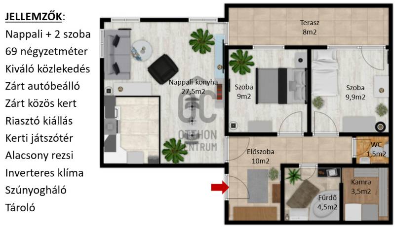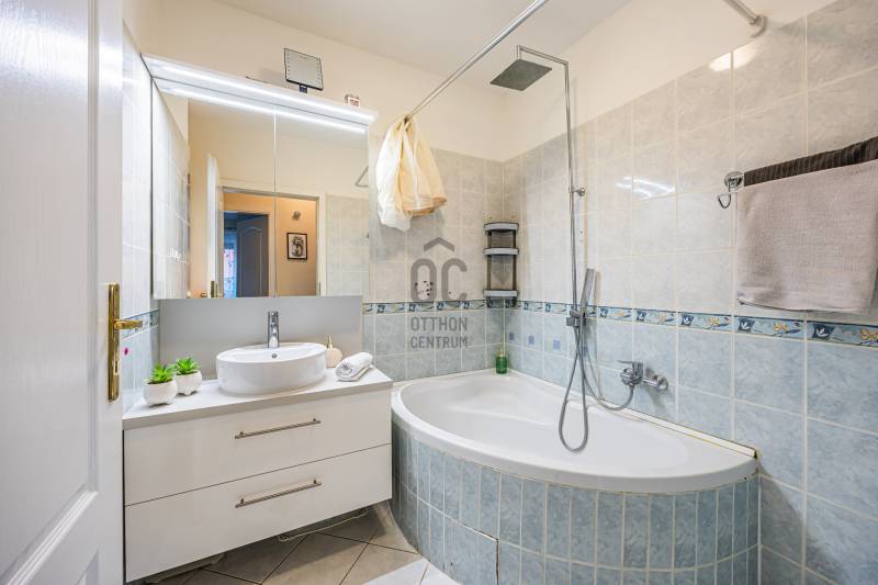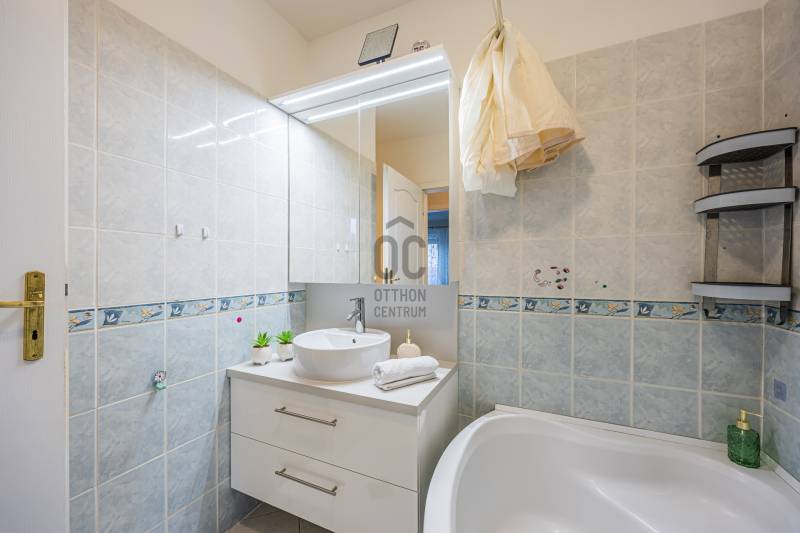 A 2005-ben épült tégla lakás a népszerű ALAGLIGET LAKÓPARKBAN található.Az INFRASTRUKTÚRA kiváló, a környék rendezett, a szomszédság barátságos, családias.A ház ZÁRT közös KERTJÉBEN KÉT JÁTSZÓTÉR is van, ahol a gyerekek biztonságban játszhatnak.A kimondottan JÓ ELOSZTÁSÚ, TÁGAS otthon ragyogó állapotban van.Fekvésének köszönhetően télen is VILÁGOS, nyáron pedig nincs hőség.EXTRÁK: szúnyogháló, redőny, hűtő-fűtő inverteres klíma, riasztó kiállás, beépített előszobai, fürdőszobai és kamra szekrény, aktív szenes beépített vízszűrő,kimondottan alacsony rezsi, két erkély.Az elmúlt 2 évben A LAKÁS FEL LETT ÚJÍTVA:-új laminált padló,-tetőtéri ablak, -napelemes, elektromos redőny,-új fürdőszoba bútor,-egyedi készítésű mosókonyha bútor,-1 éves új beépített sütő (electrolux) és mosogatógép (bosch) a konyhában,-2 db hűtő-fűtő klíma (Samsung és Mitsubishi)A lakás HELYISÉGEI: amerikai konyhás nappali, két különnyíló hálószoba, fürdőszoba, háztartási helyiség, külön wc.Minden szoba NAGY ABLAKOS, fenyőfákra, vagy rendezett lakóparki környezetre néz és KÉT SZOBÁNAK is van SAJÁT TERASZA.A lakás RÉSZBEN TETŐTÉRI, az egyik hálószoba oldalfala és a nappalinak a sarka csapott, így a nettó 63 nm bruttóban 68 nm-t tesz ki.Az összes többi fala egyenes, amitől tágas, JÓL BERENDEZHETŐ.A TETŐTÉR ELŐNYEI:-A csapott résznél \"hiányzó\" légteret NEM KELL BEFŰTENI, ami csökkenti a rezsinket.-A közel 70 nm-es lakás nettóban 63nm (58+fél terasz), így KEVESEBB A KÖZÖS KÖLTSÉG, hiszen azt csak a nettó terület után kell fizetni.-Tetőtéri lakás mindig KUCKÓS, HANGULATOS, ROMANTIKUS, mivel általában a legfölső szinten van, ahová nem jön más.-Fölső szint lévén KÖRBE SÜTI A NAP, ami szintén a téli fűtés számlát csökkenti.Ez a lakás nagyon jól kereszt-huzatolható, szellőztethető, így a nyári hőség sem jelent gondot, a KLÍMÁT szinte nem is kell használni.A lakáshoz EGY ZÁRT ÉS EGY NYITOTT TÉRKÖVEZETT beálló is tartozik.A lakás FENNTARTÁSA KEDVEZŐ, a TELJES REZSI télen 28e, nyáron pedig mindössze 18 ezer forintból kijön!!!A konyhabútor gépekkel a vételár részét képezi.5 perc sétán belül van az új általános iskola, ovi, bölcsi, játszótér, kisbolt, gyógyszertár, háziorvosi rendelő és az ingyenes buszjárat, amely a vasútállomásra visz. 2 perc sétára van pékség, zöldséges, közért, cukrászda, pizzéria, termelői piac.Autóval 5-7 percen belül hipermarketek és minden egyéb elérhető.M2, M0, M3 néhány perc alatt elérhető.Hívjon bizalommal a hét bármely napján!Ez az ingatlan a \"Felező csomag\" megbízási portfólióhoz tartozik. Részletek az Otthon Centrum weboldalán.